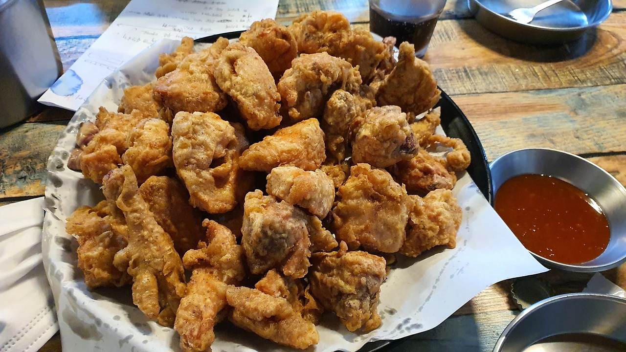 바로 튀긴 통닭은 늘 진리다.