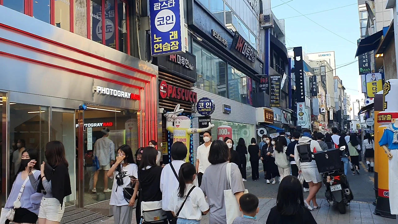 7일 오전 광주대표 상권 중 하나인 충장로도 인산인해를 이뤘다. 코로나로 인적이 끊긴 상황과 대조된 모습이다.