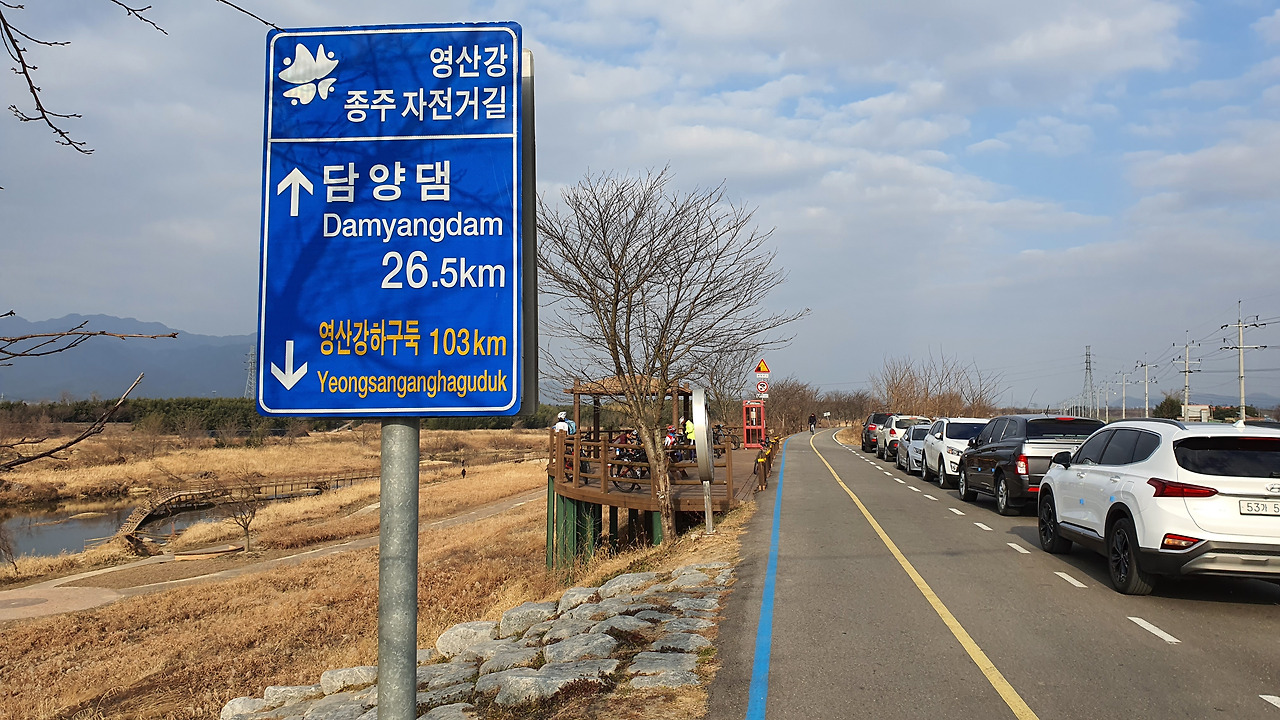 집앞 영산강 산책로를 따라 광주에서 담양 시골집까지 걸어가는 동선이다.