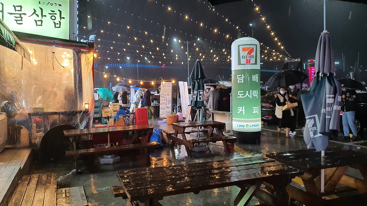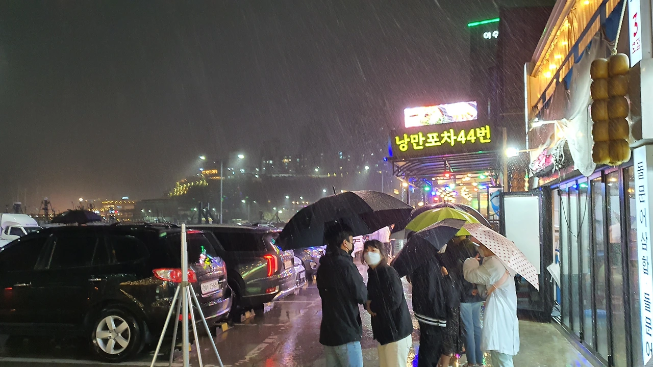 폭풍속에 포차는 청춘남녀로 인산인해. 빈자리가 없다. 조용히 자리를 피해 인적이 드문 조용한 횟집을 찾는다.