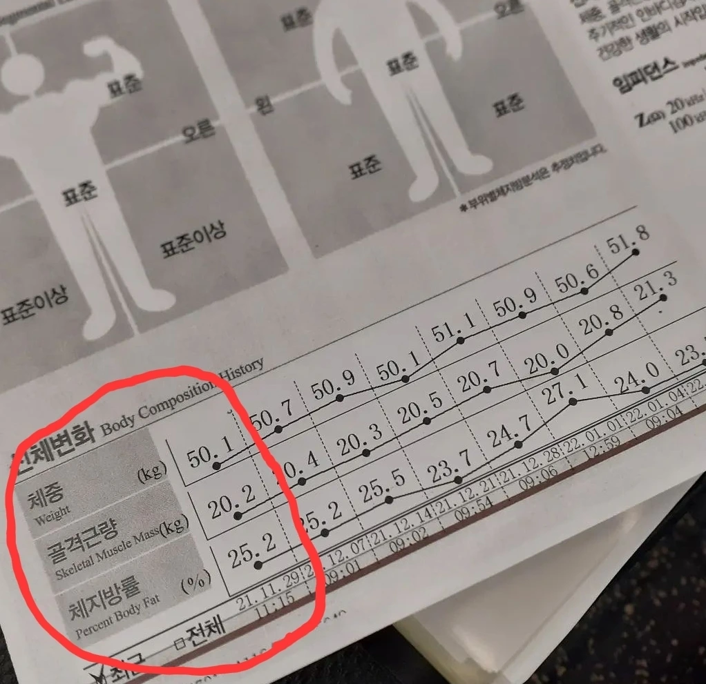 이 날 인바디 측정했을 때 나의 신체변화는 보면