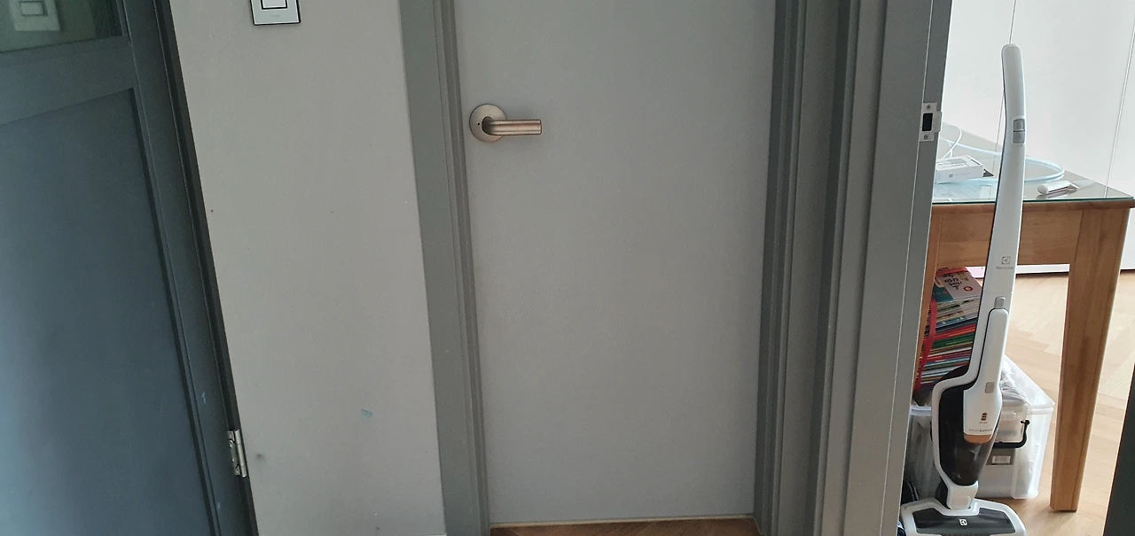 조명을 키면 저 구멍난 부분이 주름져서 아쉬웠다. 샌딩한 부분이 잘 못했던 것이다. 그래도 시트지는 잘 붙여서 다행이였다. 조명 끄면 거짓말처럼 구멍난 문인가 싶을정도로 깨끗한 문이 되어있다.