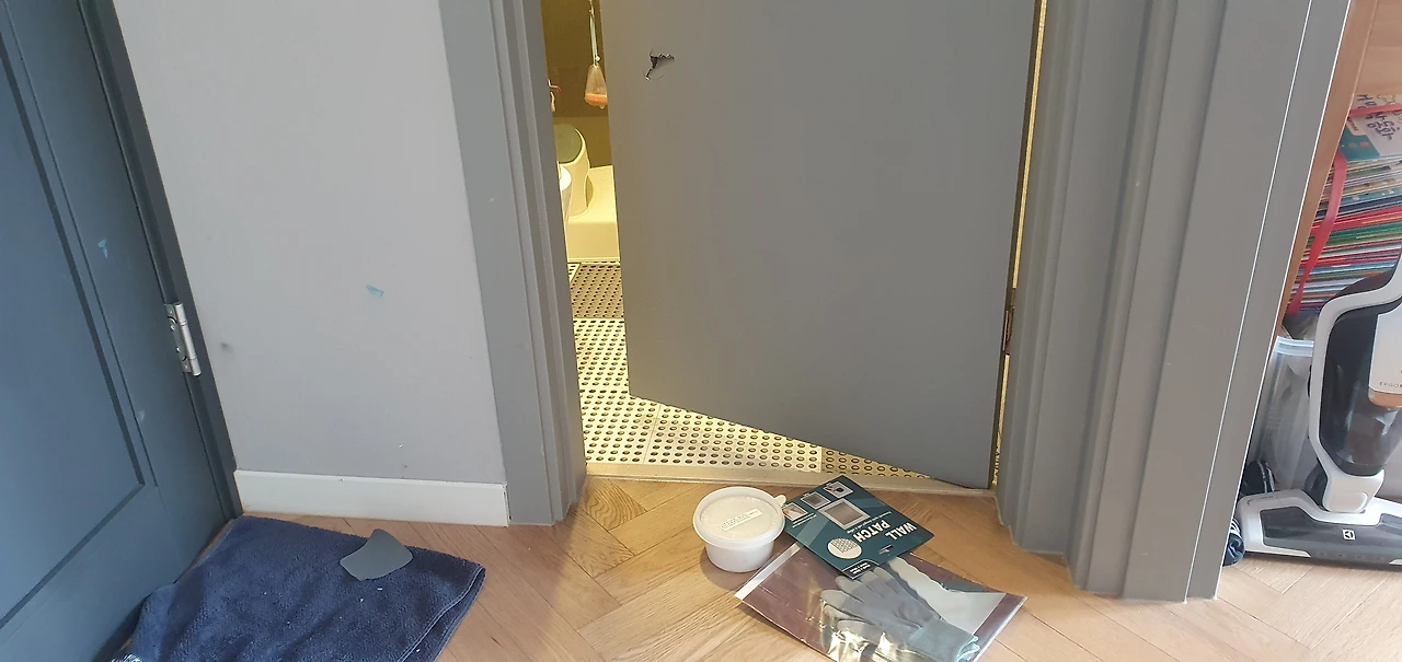 욕실 문짝에 구멍이 났다. 이걸 어떡하지 싶어 인터넷으로 검색하며 알아보니 셀프로도 리폼이 가능한 포스팅을 발견했다. 그래서 구멍 메꾸기 위한 재료들을 구입했다.