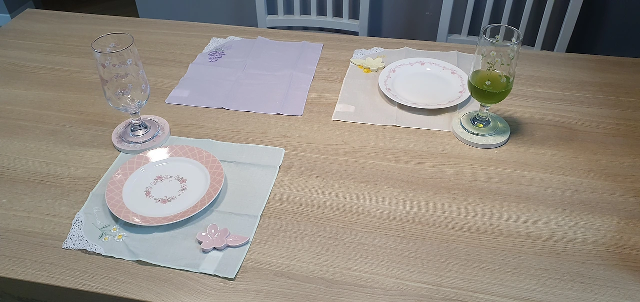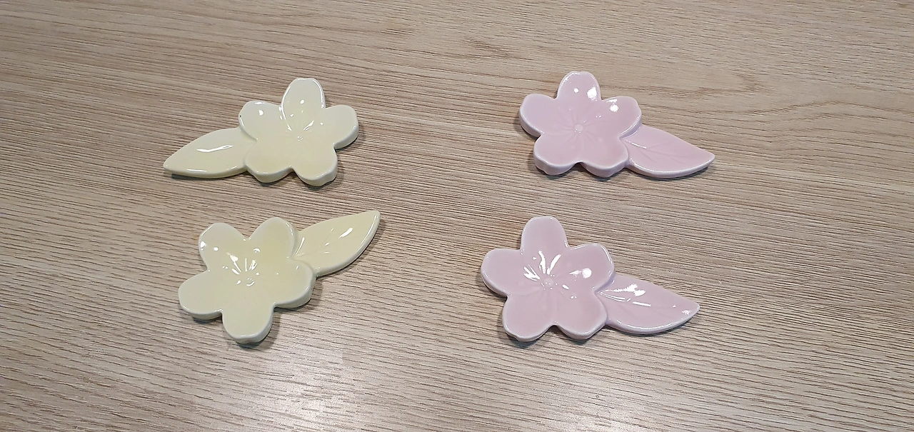 수저받침용도 봄시리즈 답게 꽃무늬형태로 제작되었다. 도자기류여서 깨지지않게 조심조심 세팅을 했다.