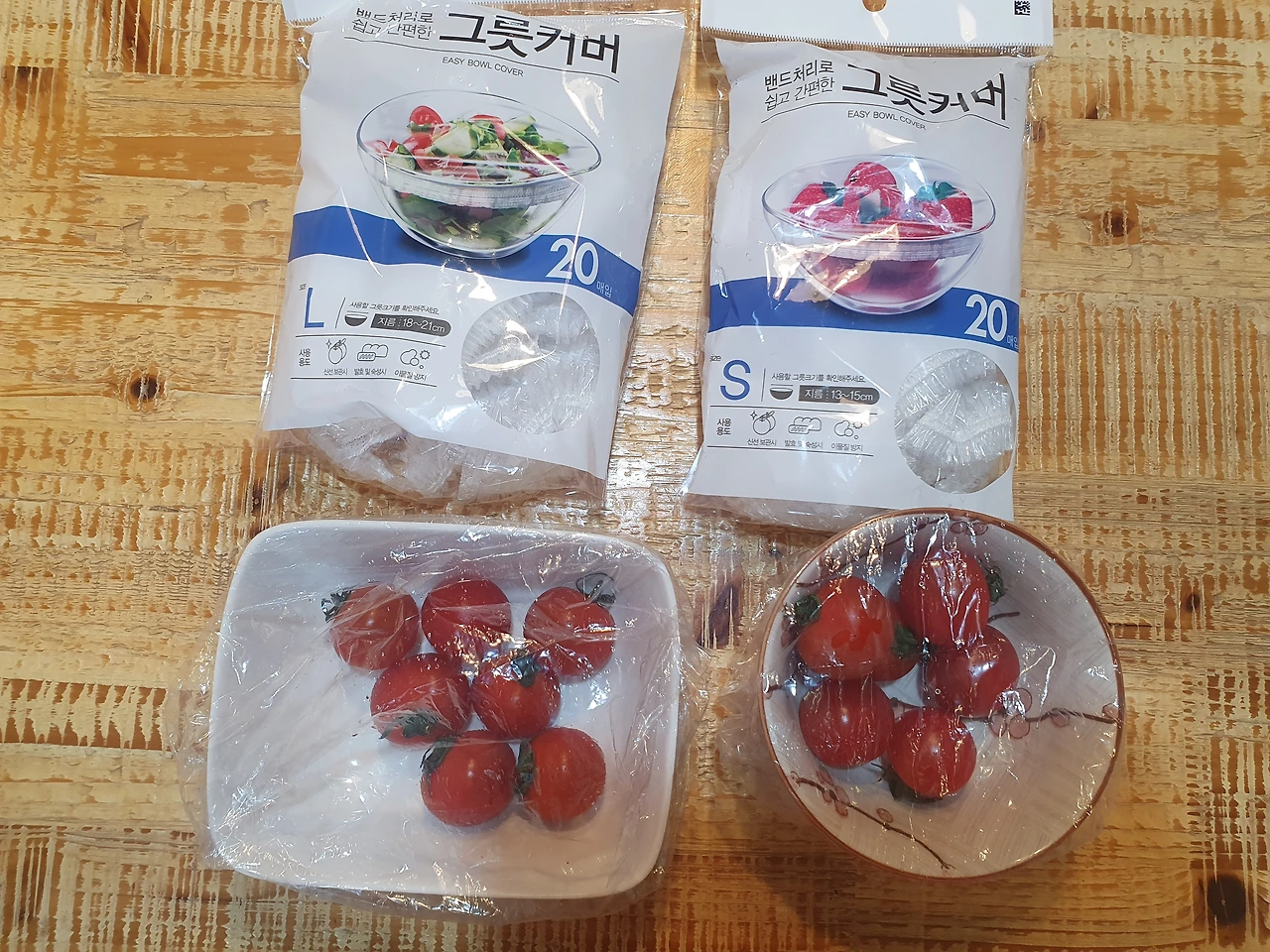 다이소에 그릇커버가 있길래 사이즈별로 구매했다. 반찬통도 없고 남긴 음식 보관할 때 비닐에 묶어 냉장보관했었는데 이제 이렇게 할 필요없이 그릇커버로 간단하게 보관할 수 있다. 아이들이나 내가 음식 남기는 일이 가끔 있기에 이 그릇커버로 간편하게 그릇에 씌어 냉장보관할 수 있게 되었다.