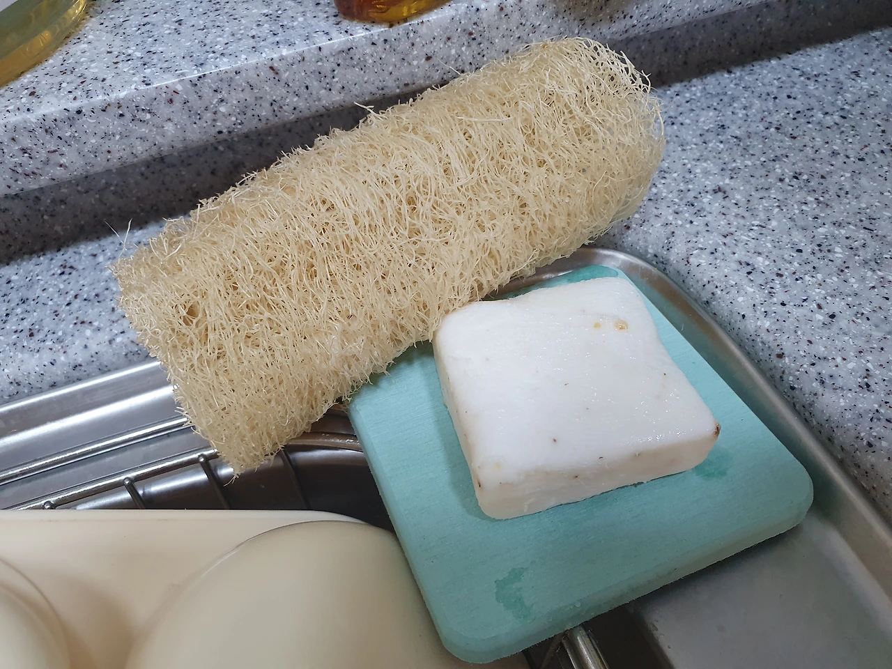 작년부터 주방비누세제를 싸왔던 나는 지금도 잘 쓰고 있었기에 비누받침을 샀다. 설거지할 때 잔여물도 깨끗하게 닦여져서 이제 액체세제는 안쓰고 무조건 비누주방세제를 쓴다. 수세미도 천연수세미인데 잘 쓰고 있다.