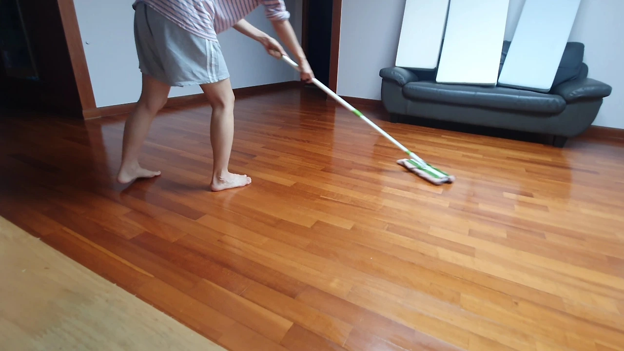 그리고 막대걸레로 바닥을 반짝반짝하게 닦아준다.
