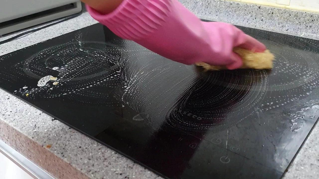 인덕션 전용 세제로 뿌려 수세미로 열심히 문지르고 마른행주로 깨끗하게 닦아준다.