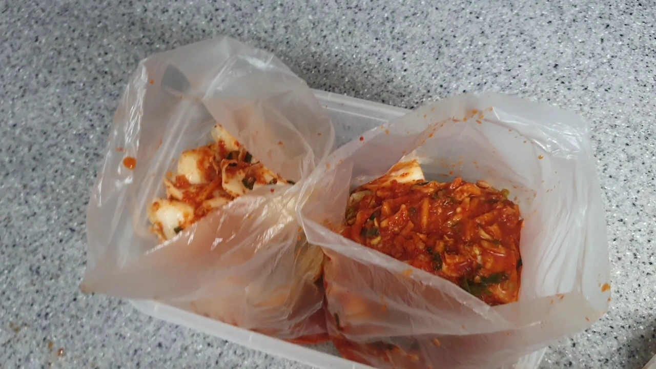 무엇보다 통에 김치 자국이 안 묻으니 좋다.