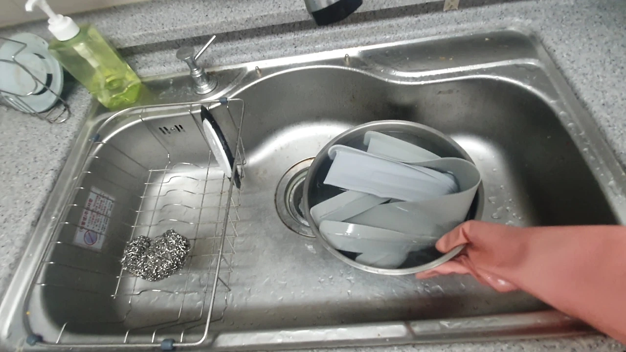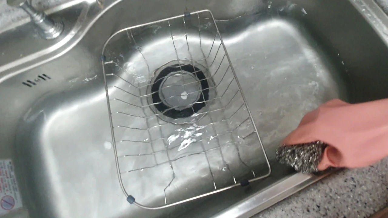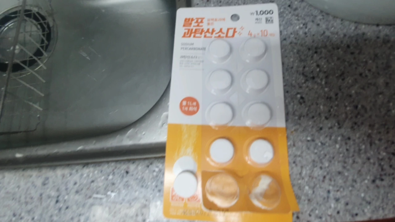 과탄산소다 1개를 넣어준다. 그러면 부글부글 끓으며 발포되기시작한다. 나는 철수세미로 열심히 구석구석 닦아준다. 그렇게 15분후 나는 물을 빼주고 찬물로 싱크대개수대를 헹궈주며 마무리한다.
