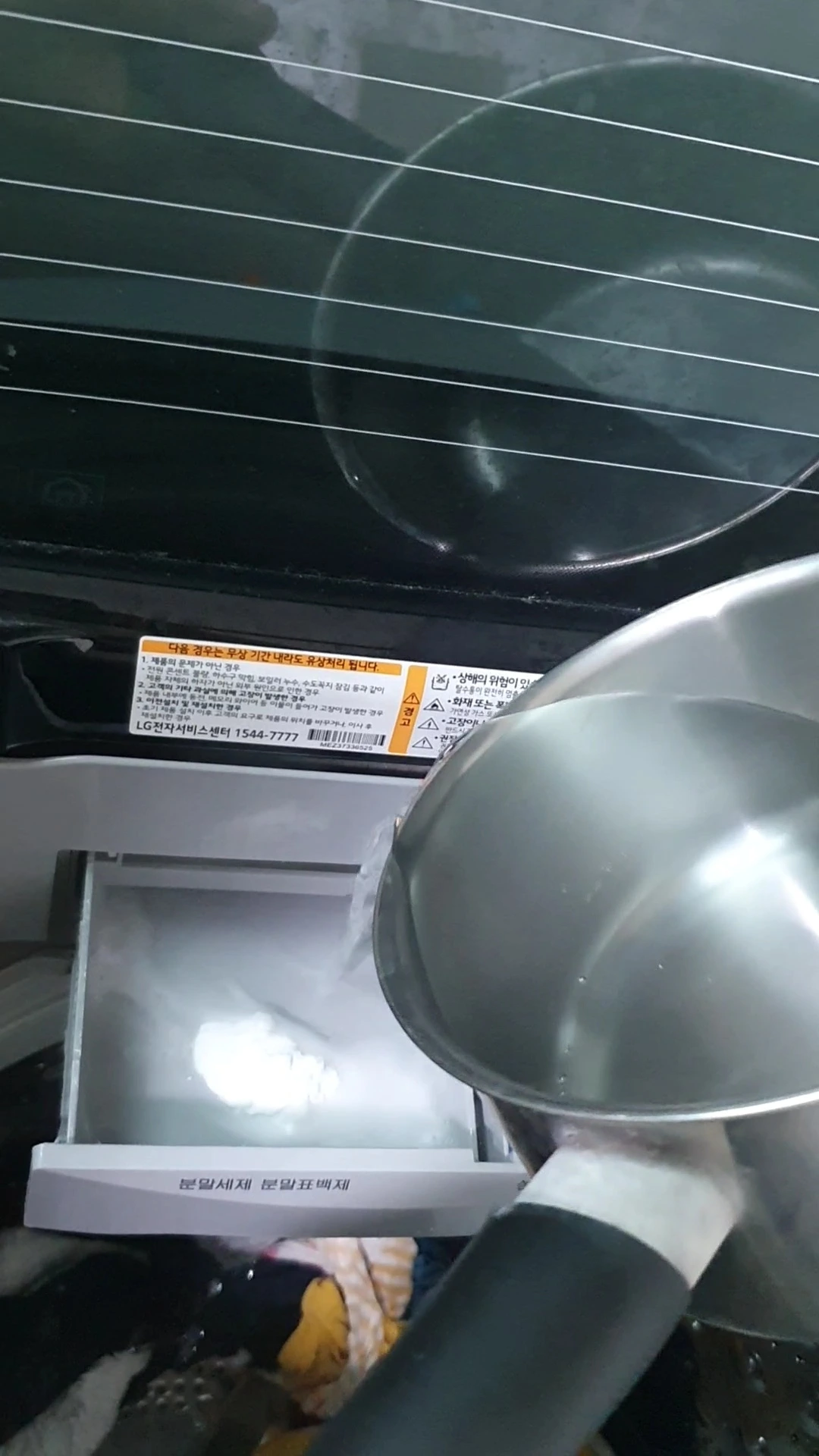 세탁이 완료될 때 다시 세제통 열어 베이킹소다를 넣고 거기에 뜨거운 물을 부어 헹굼1회, 탈수 자동맞춤으로 설정해서 돌린다. 혹은 일반세제와 베이킹소다를 함께 넣어 돌려도 되지만 나같은 경우 세제가 탄산소다여서 베이킹소다랑 같이 넣으면 안된다고 하기에 같이 안하고 따로따로 한다.