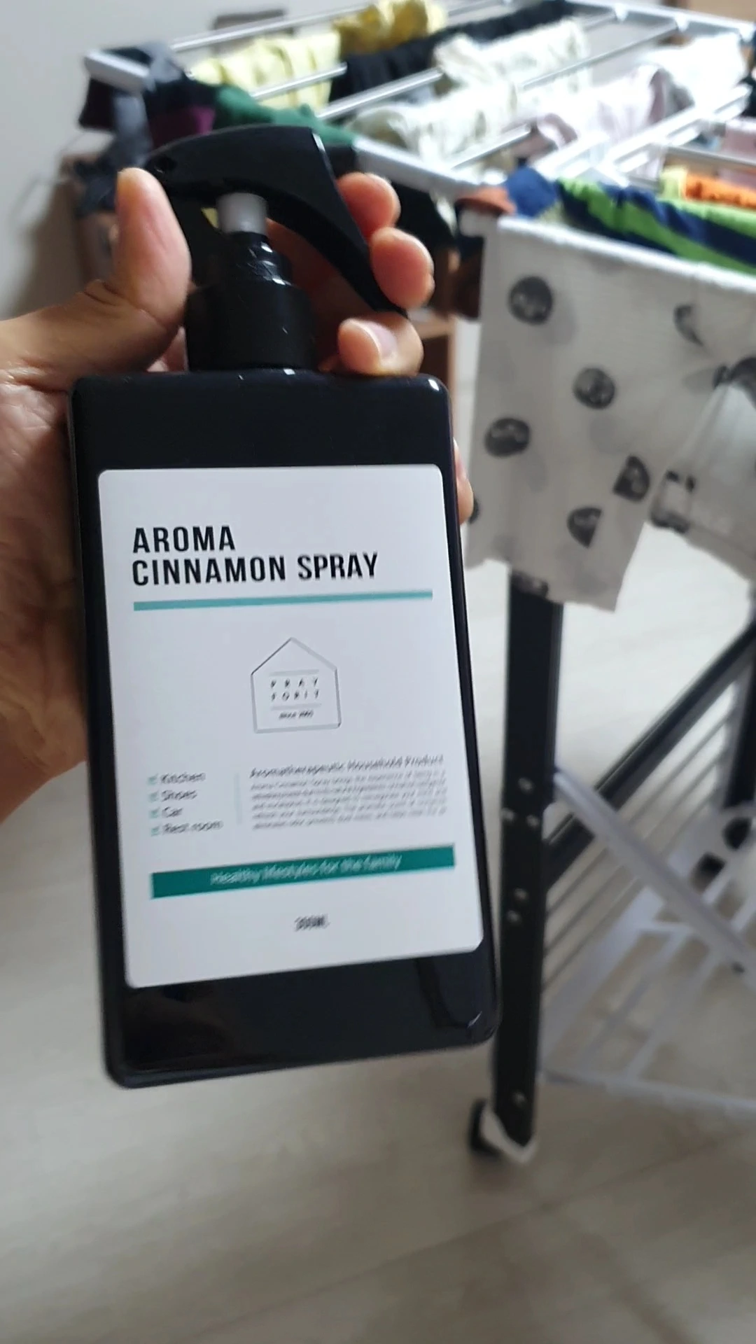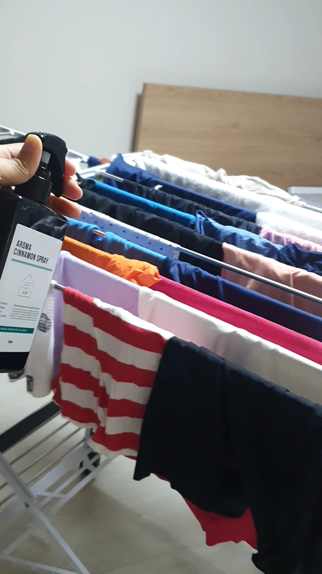 2. 시나몬 스프레이로 건조된 빨래들 분사하기