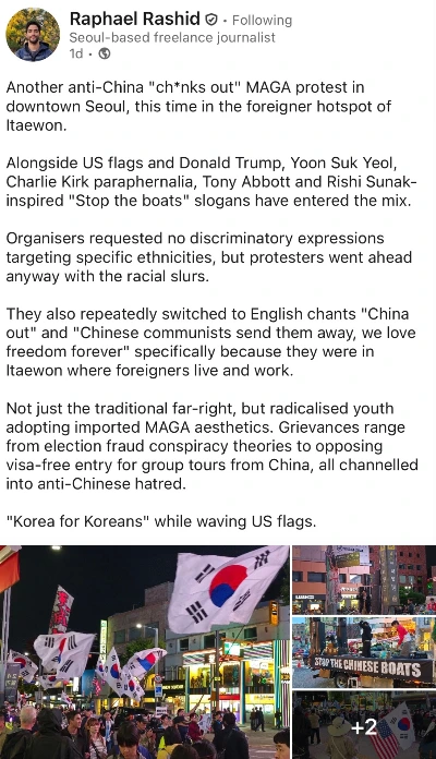 (Original LinkedIn post: https://www.linkedin.com/posts/sangyunl_another-anti-china-chnks-out-maga-protest-activity-7385846188626931712-K1fn)