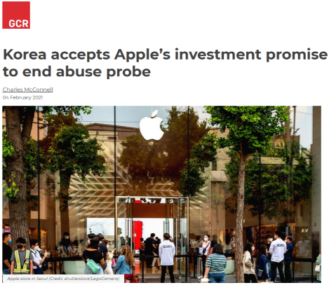 Furthermore, several global tech companies, although they were not necessarily digital platforms, were on the radar of the competition watchdog in 2021. For example, the KFTC closed its investigation into Apple’s abusive practices related to iPhone distribution channels with a commitment decision (Decision no. 2021-074, see here). Similar to the French Autorité’s Apple case (Decision 20-D-04, see here and here), the KFTC raised concerns around Apple’s superior bargaining position in its distribution system. The KFTC accused Apple of coercive practices, that is, foisting advertising and repair costs on local mobile carriers by using that superior bargaining position, as noted in the 2016 French government’s litigation against Apple (see here). However, the Korean case was closed without reaching an infringement decision. The KFTC closed the case and accepted Apple’s commitments to offer around 100 billion won (circa 73.4 million Euros) worth of support programs for small businesses and consumers, remove the contested contract terms, transparently share advertising costs with retailers.