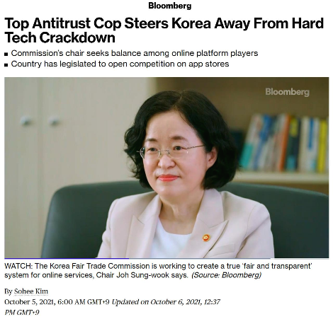 Sangyun Lee, 'Main Developments in Competition Law and Policy 2021 – Korea' (Kluwer Competition Law Blog Feb 14, 2022) http://competitionlawblog.kluwercompetitionlaw.com/2022/02/14/main-developments-in-competition-law-and-policy-2021-korea/