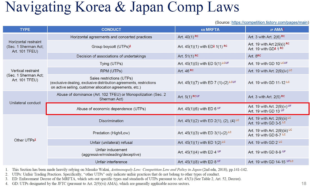 * 위 표는 아래 제가 발표한 슬라이드에 있는 내용입니다. 관련 내용을 이용하실 때는 부디 다음의 인용표기를 부탁드립니다: Sangyun Lee, 'Some Afterthoughts on the HARM of ASBP / AED, coming after 'Abuse of Economic Dependence / Superior Bargaining Position in Korean Competition Law: From a Comparative Perspective with Japan' (Rikkyo University, Tokyo, Nov 2, 2022)' (Seoul Workshop: Looking at Fairness and Antitrust through the Lens of ASBP, Seoul, Dec 16, 2022) https://lnkd.in/gMQvwvw2