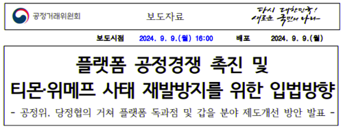 2024년 9월 9일, 한국 공정거래위원회는 기존의 플랫폼 규제 도입 계획을 접고 대신 플랫폼 관련 이슈 대응을 위한 공정거래법 개정을 추진하겠다는 계획을 발표했다. 정부의 입법적 시도로는 2020년 9월 온라인 플랫폼 공정화법과 2023년 플랫폼 경쟁촉진법 추진에 이은 세 번째 시도다. 후자의 경우 지난 2월 추진을 보류했다가 5월 다시 추진 계획을 밝힌 것을 나누어 본다면 이번 시도를 네 번째로 볼 수도 있겠다.