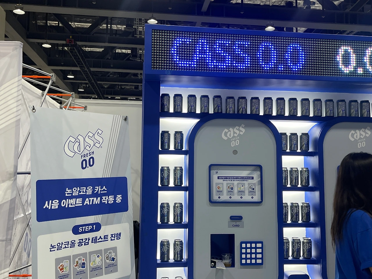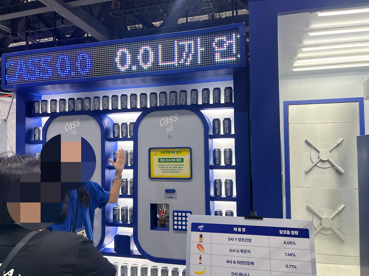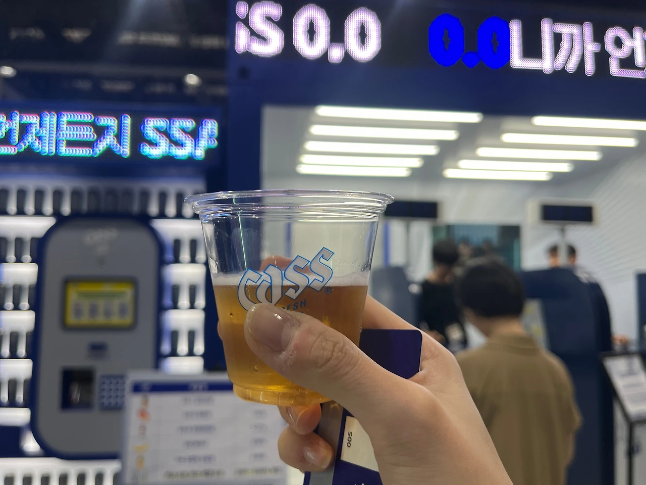 카스 팝업스토어 부스에 방문하여 간단한 퀴즈와 함께 카스의 신제품을 맛볼 수 있었습니다. 단순히 제품을 진열해놓는 것이 아니라, 신제품의 맛과 관련된 퀴즈를 통해 관람객들의 참여를 유도하고, 바로 시식할 수 있게 해서 "오, 진짜 그러네?"라는 자연스러운 반응과 공감대를 형성했습니다.