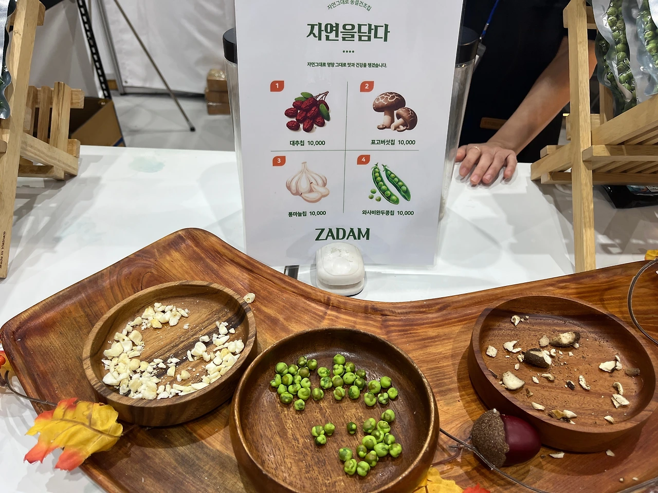 순창의 전통 장류와 장아찌 부스도 다녀왔습니다. 여러 장아찌를 맛보면서 외국인들이 많이 구매할까 궁금하여 사장님께 여쭤봤습니다. 조금 전에 아랍계 외국인 관람객이 매실 장아찌를 굉장히 마음에 들어하여 구매했다는 이야기를 해주셨습니다. K-Food가 가진 진정한 글로벌 어필을 확인할 수 있었죠. 발효 음식에 대한 전 세계적인 관심 증가와 한국 전통 발효 기술의 우수성이 만나 만들어낸 자연스러운 결과였습니다.
