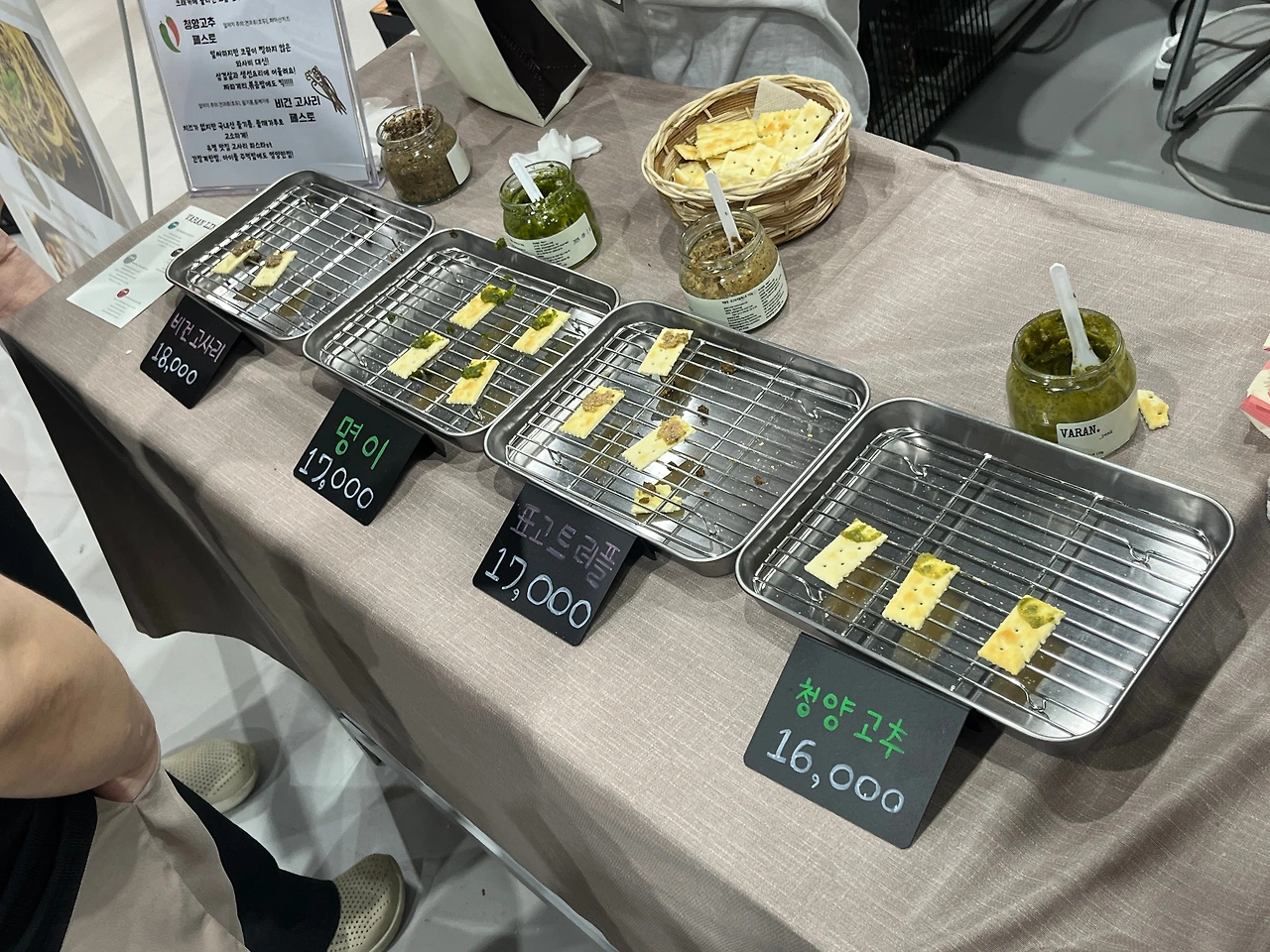 I’ve always been a big fan of basil pesto, so I was excited to try a new twist at the festival. This pesto was made with Korea’s signature herbs and vegetables, including garlic chives, wild sesame leaves, Cheongyang chili peppers, and shiitake mushrooms. The flavors of the ingredients came through naturally without being overwhelming, making it easy to enjoy. I believe this kind of creative approach is one of the key strategies for helping Korean food stand out in the global market.
