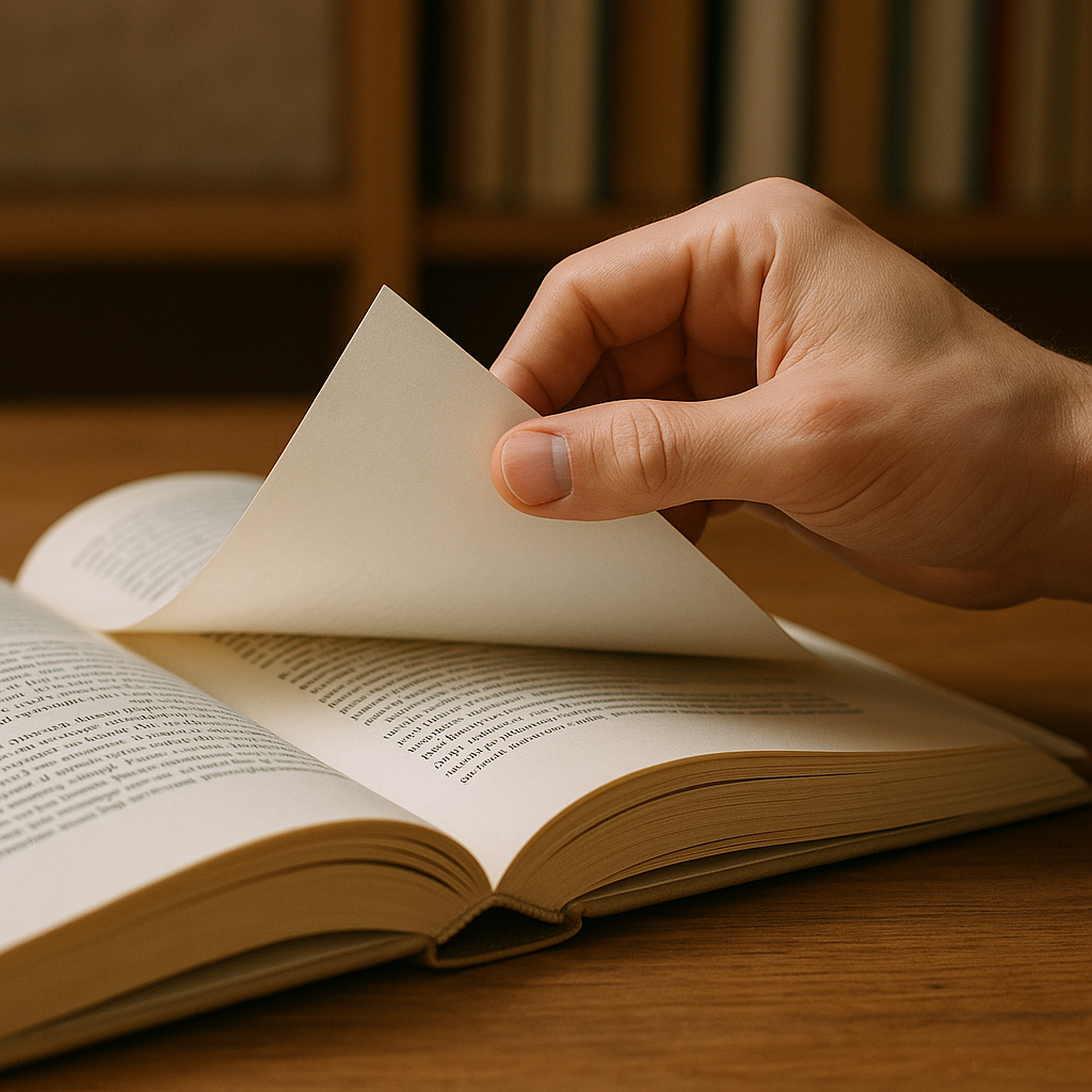 책장을 넘기던 손을 멈추고,
