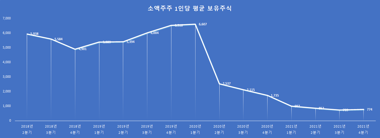 삼성전자 소액주주가 얼마나, 어떻게 증가했는지 분기별 추이를 2018 ~ 2021년까지 정리를 해보았습니다.