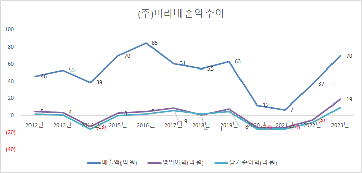 종합적으로, 미리내는 장기간 운영된 탄탄한 자산기반 위에 최근의 어려움을 딛고 재무성과가 회복되고 있는 단계입니다. 그러나 여전히 높은 고정비와 관계회사와의 재무적 관계가 회사의 리스크 요인으로 남아 있습니다. 최근 한 번의 방송 노출로 인해 인지도가 상승하여 추가적인 매출 신장이 기대됩니다만...