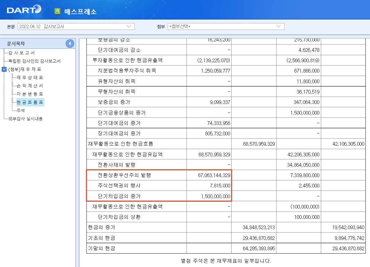 3. 로켓의 연료가 떨어져 간다 (유동성 위기) 제가 이 재무제표를 보며 가장 우려스러웠던 부분은 바로 '현금 곳간'입니다. 남은 돈: 2024년 말 기준, 회사가 당장 융통할 수 있는 현금성 자산은 약 93억 원 수준입니다. 갚아야 할 돈: 1년 내 갚아야 할 단기차입금이 64억 원입니다. 새어 나가는 돈: 영업활동으로 매년 약 150억 원이 빠져나갑니다.