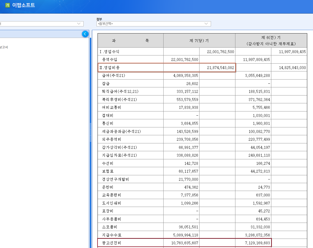사실 그리고 이 회사를 다시 살펴본 계기는 최근 비슷한 경우를 보고 있기 때문입니다. <말해보카>로 지금 한창 <콴다과외>처럼 모델 전략을 펼치고 있는 (주)이팝소프트입니다. 최근에 비비를 모델로 쓰고 있으며, 얼마 전 경제유튜버 슈카월드에도 광고비를 집행하더군요. 스픽 등 영어 관련 AI 어플이 최근 무지 경쟁을 하고 있습니다. 살아남기 위한 치킨싸움이죠. 이팝소프트의 재무제표는 2024년 처음 공개되었습니다.