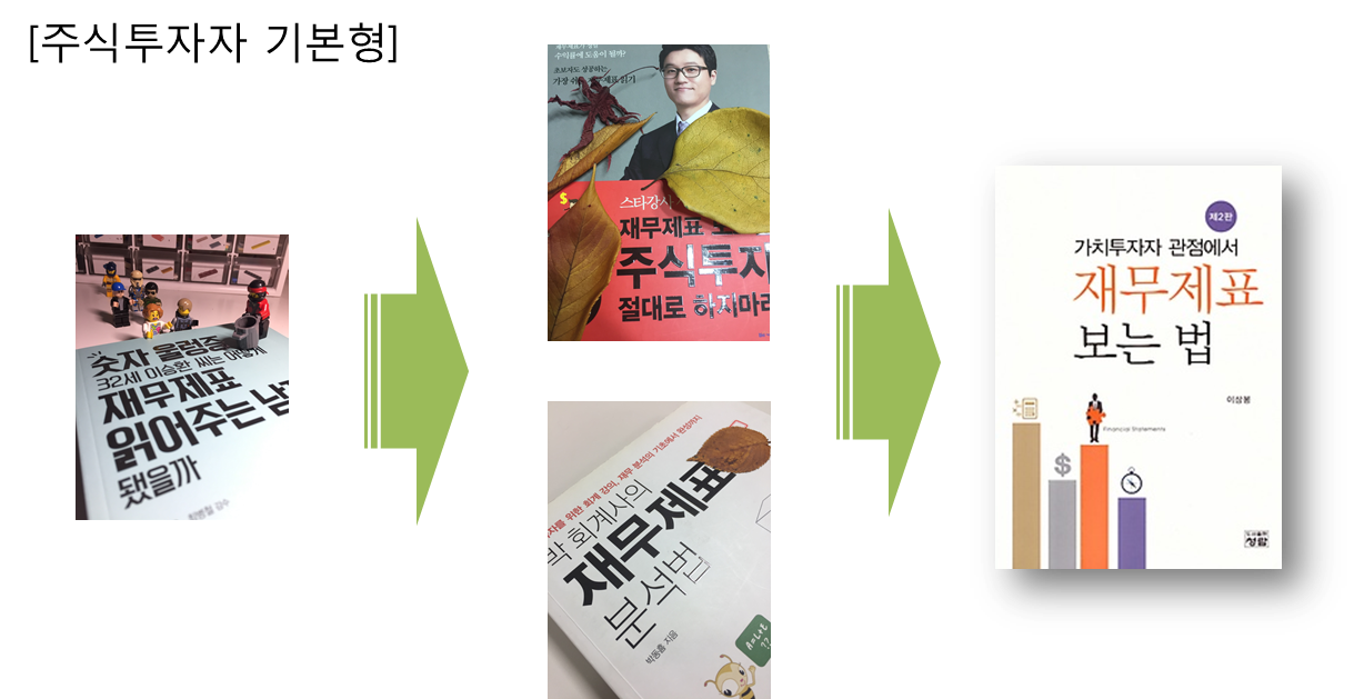 [주식투자자 기본형]은 재테크의 일환으로 주식투자를 하는 직장인을 위한 코스입니다. 전문투자자를 대상으로 한 추천서가 아닙니다. 사경인 회계사가 쓰신 책 제목과 같은 취지로 추천드립니다. "재무제표 모르면 절대 주식투자하지 마라" 정말 어렵습니다. 매일 바쁜 사회생활하면서, 수시로 변하는 주식투자에서 성공하기란... 묻지마, 강제적 존버.. 등 수없는 실패사연을 듣습니다. 그러나 그래도.... 그럴 경우 이 책들을 보시고 도전하시길 권합니다.