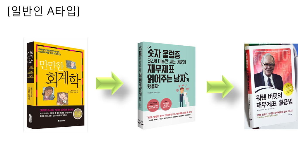 『만만한 회계학』 → 『숫자 울렁증 32세 이승환 씨는 어떻게 재무제표 읽어주는 남자가 됐을까』 →『워렌 버핏의 재무제표 활용법』
