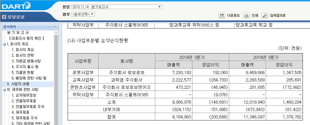 지배기업인 주식회사 로보로보(이하 “당사”)의 목표시장은 교육용 로봇시장이며, 초등학생 및 유아를 위한 교육용 로봇을 생산·판매하고 있습니다. 주요 제품은 교육용로봇, 로봇용 학습소프트웨어, 관련 교재 등 교육에 사용되는 로봇 및 부수제품을 연구개발, 제조, 판매하고 있습니다. 종속기업인 과학샘 주식회사는 국내 방과후학교 교육용 생명과학 및 코딩분야의 선두주자로 국내외로 인정받은 교육재료, 컨텐츠 개발 및 공급 업체입니다. 종속기업인 주식회사 로보로보앤키즈는 유아동 연령층을 대상으로 한 놀이교육 융합형 체험 콘텐츠 및 프로그램 개발과 유료 서비스 용역 공급 업체입니다. 종속기업인 주식회사 스쿨케어365는 방과후교육 위탁서비스업을 영위하는 업체로, 당사 및 종속기업의 교육용 로봇 및 기자재 공급과 시너지효과를 기대하고 있습니다.