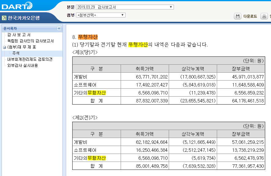기존 은행들의 모바일 어플은 아주 복잡합니다. 카카오뱅크는 심플하지만 그와 아주 미세한 차이로 다른 금융서비스를 제공하려고 노력했다고 합니다. 그 미세한 차이를 재무제표는 카카오뱅크 무형자산에 기록하고 있습니다. 개발비 637억 원은 IT와 금융이 함께 머리 맞대고 만든 카카오뱅크의 새로운 프로그램 개발비가 포함된 숫자입니다. 기존 은행서비스를 모바일에서 단순하고 쉽게 적용할 수 있도록 고민한 결과입니다.