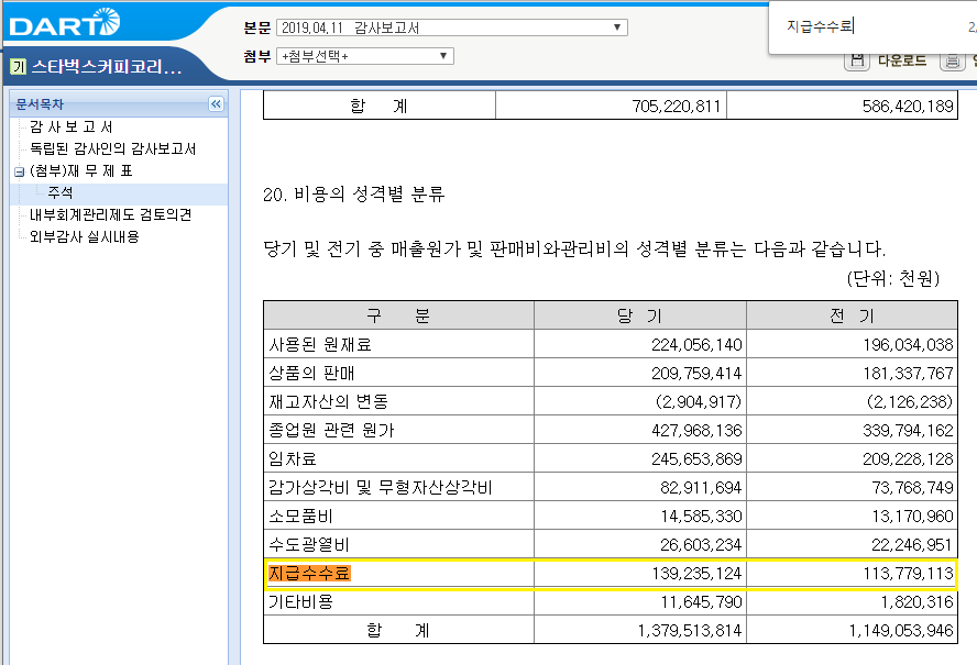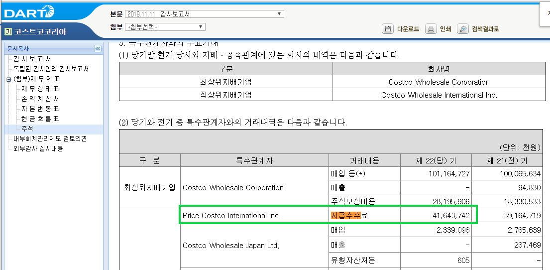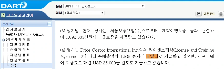 실제 실무에서 브랜드에 대한 거래가 이뤄지는 경우는 브랜드 사용권을 청구하고 지불하는 경우입니다. 보통 글로벌 브랜드를 이용하는 회사입니다. 코스트코코리아는 Price Costco International과 순매출액의 1% 로열티 지급 계약을 맺고 있습니다. 이와 비슷한 형태의 스타벅스코리아도 마찬가지입니다. 이들 회사의 지급수수료를 찾아 보면 대략 브랜드 사용료를 얼마나 내고 있는지 확인할 수 있습니다.