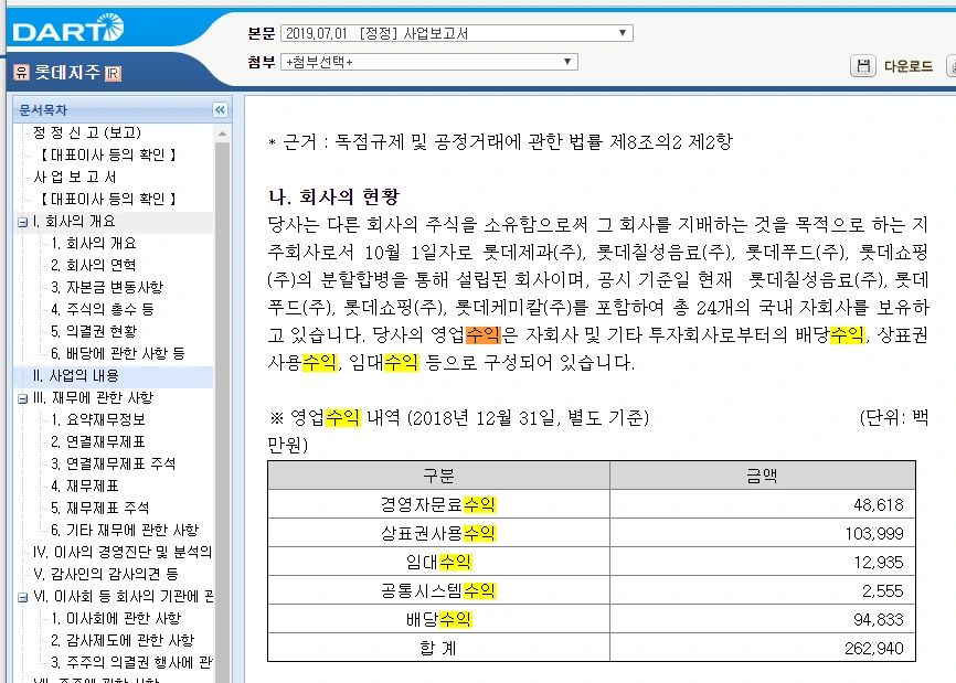 지배구조 관련해서 지주사 체제로 전환하는 회사가 요즘 많습니다. 사업을 진행하는 종속회사는 수익이 발생합니다. 그런데 종속회사를 지배하는 목적으로 운영되는 지주사의 수익원은 어떻게? 바로 그때 배당수익과 상표권 등이 지주사의 수익구조로 활용됩니다. 지주사가 상표권을 소유하고 있고, 이에 대해서 브랜드 사용료를 지주사에 속한 회사들이 지급하는 구조입니다.