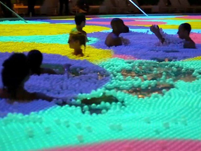 2016년 마이애미의 몬드리안 사우스비치 호텔에서는 이 같은 미디어파사드의 확장 형태로 옥상 수영장에 250,000개의 탁구공을 띄워 스크린을 대체한 후 상공에서 프로젝트를 쏘아 프로젝션 맵핑을 시도하기도 했습니다.
