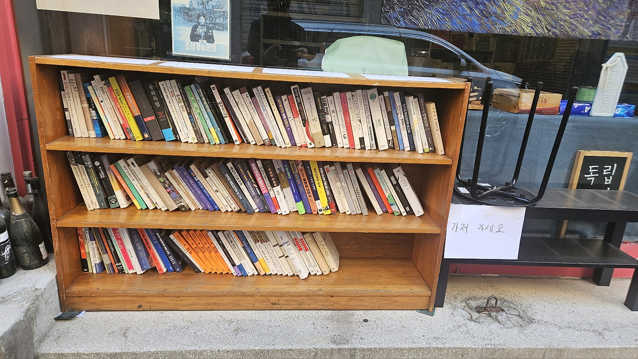 불현듯 군대 시절이 떠올랐다. 정확히는 군부대 안 공터에 있던 아이스크림 냉동고가 생각났다. 냉동고를 관리하는 사람은 따로 없었다. 냉동고 위에 아이스크림 가격이 적힌 메뉴판 비슷한 것과 냉동고 옆에 돈을 넣을 수 있는 돈통이 있을 뿐이었다. 군인들이 알아서 돈을 내고 아이스크림을 갖고 가라는 의미다. 양심에 맡겼던 것이다. 중고거래 사이트에 올리려던 책장 하나를 책방 밖으로 내놓고 알라딘에서 구매를 거부한 책들을 채워 넣었다. 책장 위에는 '필요하신 책 갖고 가세요. 가격은 원하는 만큼 계좌이체 해주세요. ㅇㅇ은행 0000'라고 적힌 A4용지를 붙였다.