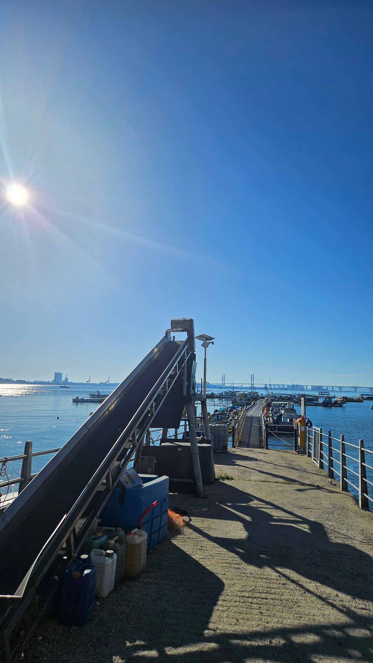 사람은 없으나, 사람의 시간이 가득했다. 햇살은 날이 선 채로 포구를 비추었고, 그림자들은 노동의 자세로 뉘어 있었다. 쇠로 만들어진 경사로는 말없이 하늘을 향해 열려 있었으나, 그 끝은 물속으로 굽어지고 있었다. 당진의 바다는 생활이었고, 생활은 고단하게 고요했다.