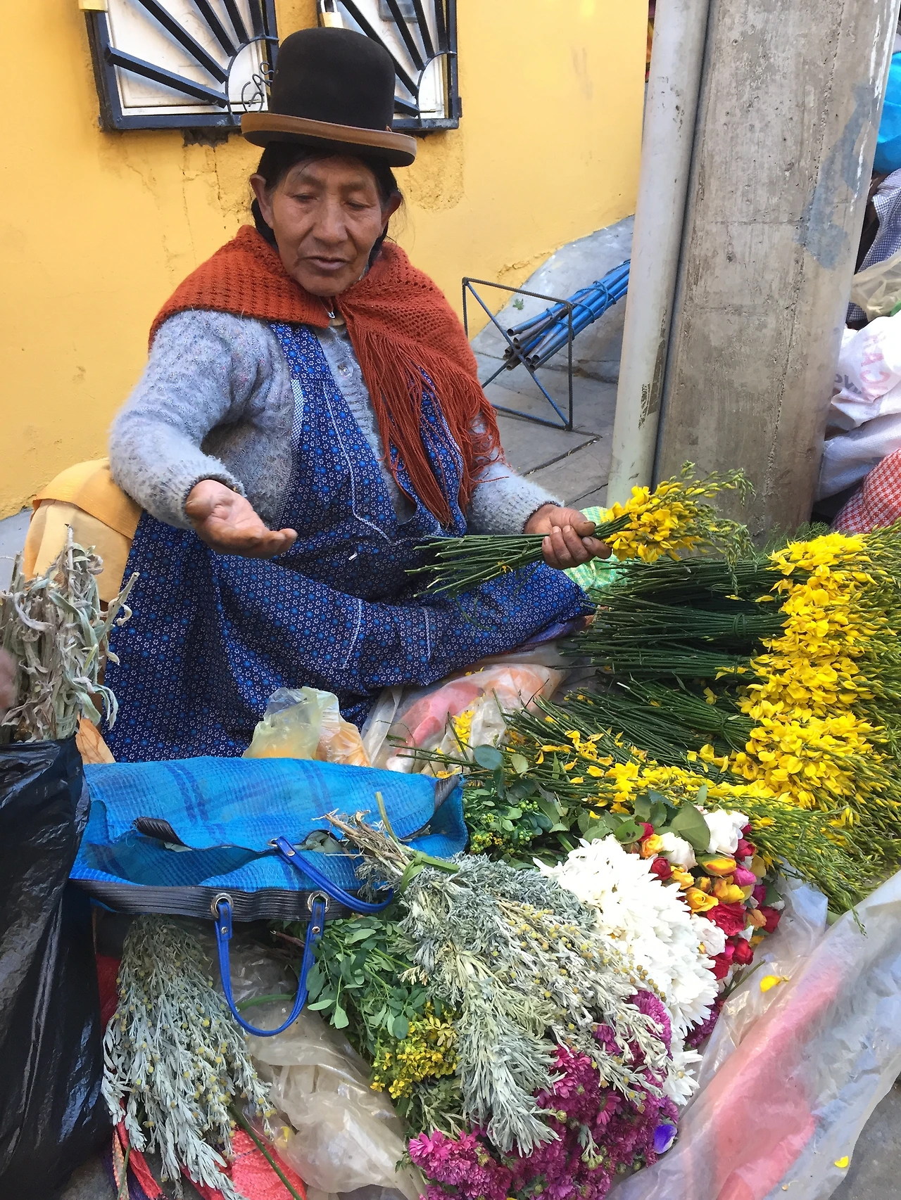 이곳은 주민의 절반 정도가 인디오들이다. 여자들은 대부분이 머리를 양쪽으로 길게 따 내리고, 어떤 사람은 그 딴 머리끝에 장식을 달기도 한다. 치마는 도대체 몇 겹을 입었는지 알 수 없고 주름을 겹겹이 잡은 치마는 폭이 무척 넓어서 한 자락을 들어 올려 어깨에 걸치면 망토를 겸할 수 있다. 새벽부터 길가에 앉아 꽃을 파는 사람들. 모자를 쓰고 망토를 걸치고 풍성한 치마를 펼치고 앉아 꽃을 파는 모습이 생활인이라기보다는 예술가 같았다.