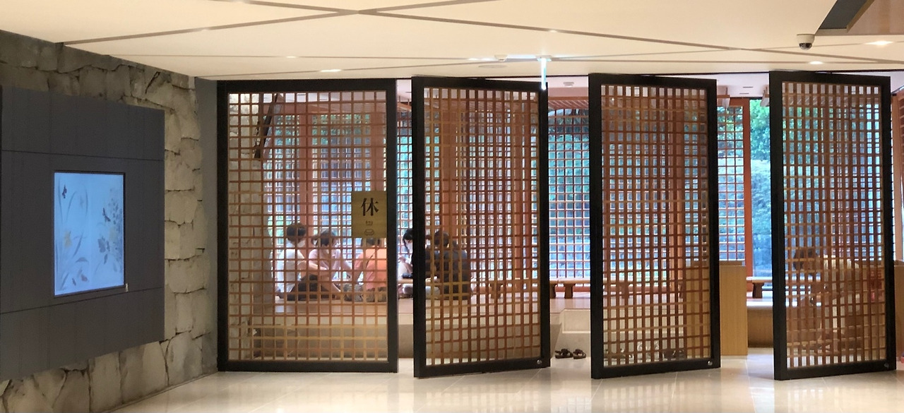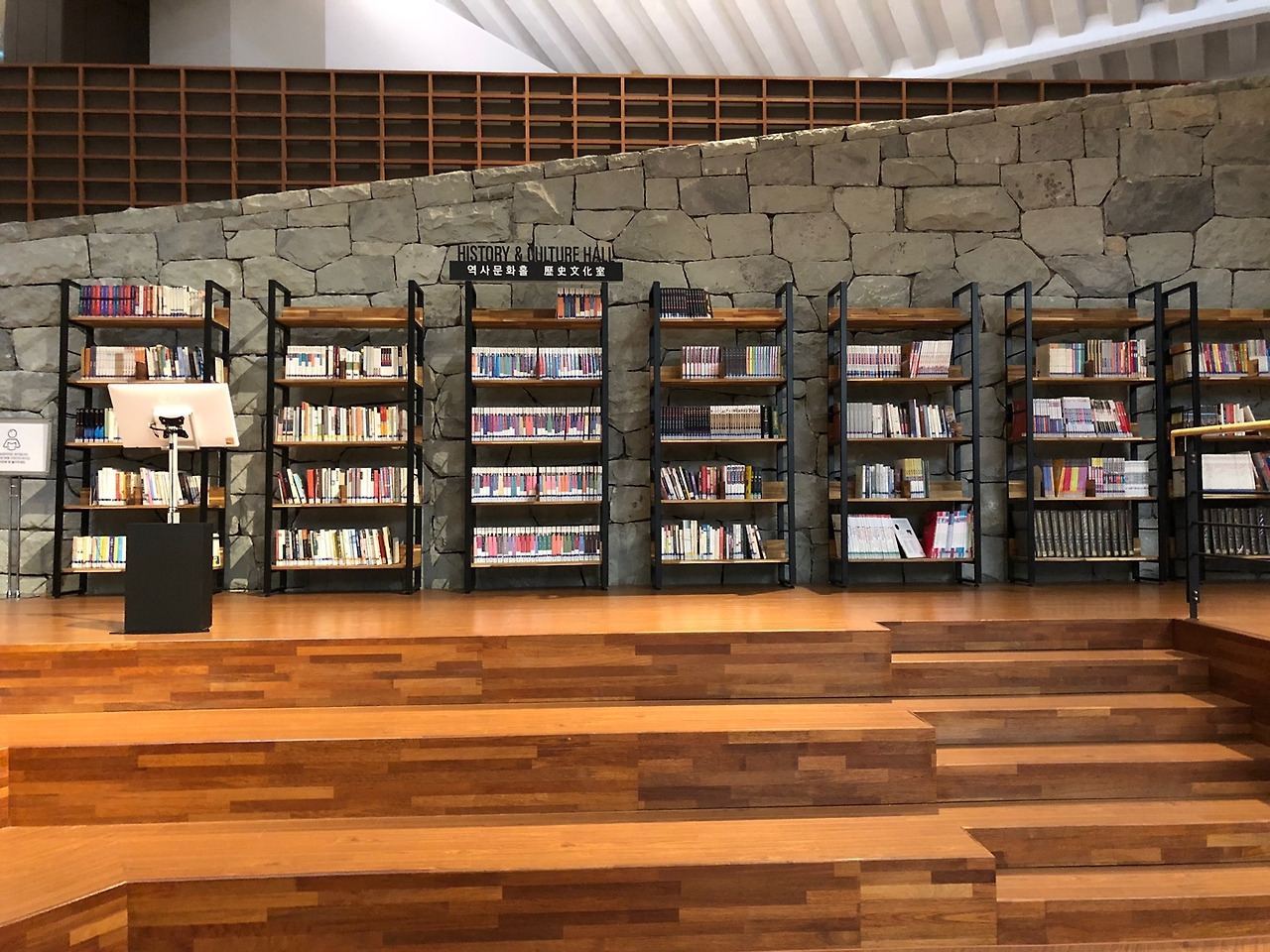 비스듬한 통로를 따라 1, 2층이 연결되는 구조