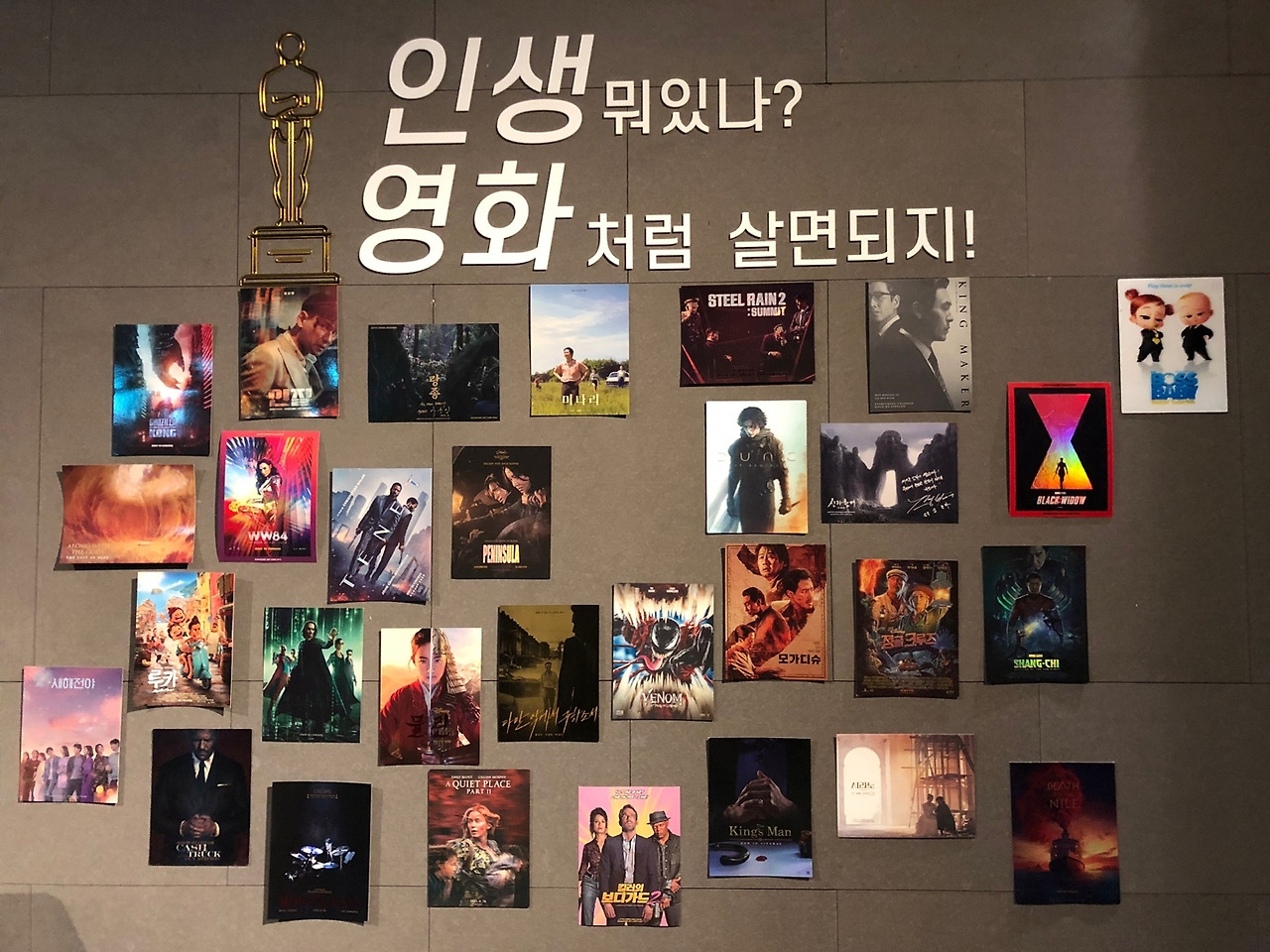 영화관 안 벽에 붙어있는 사진들 , 제목이 마음에 듭니다.
