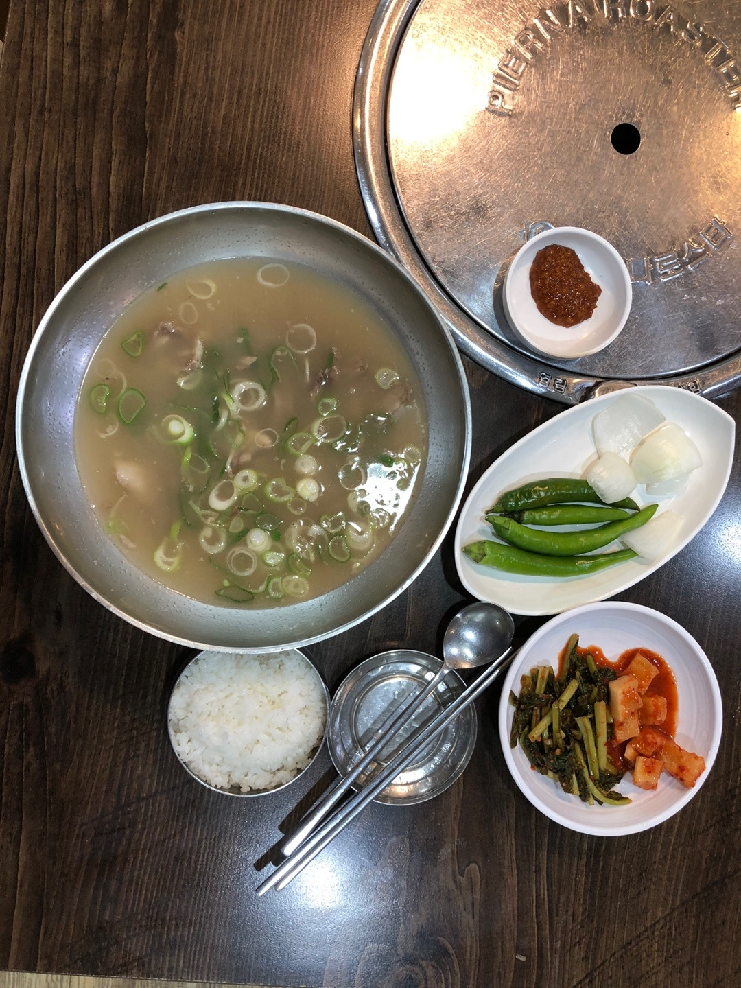 연못 옆에 있는 동네에 여러 개의 식당이 있다. 그 중 '강가명가'에 들어갔다. 다행이 소머리곰탕이 9,000원이다. 저녁은 뛰어넘거나 우유로 때울 요량으로 밥을 말아 반찬까지 다 먹었다.