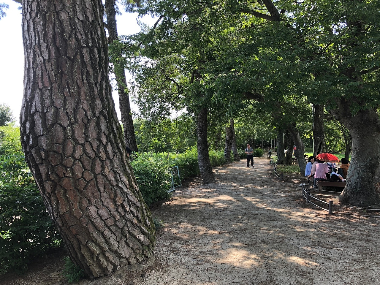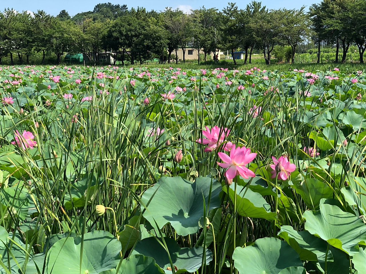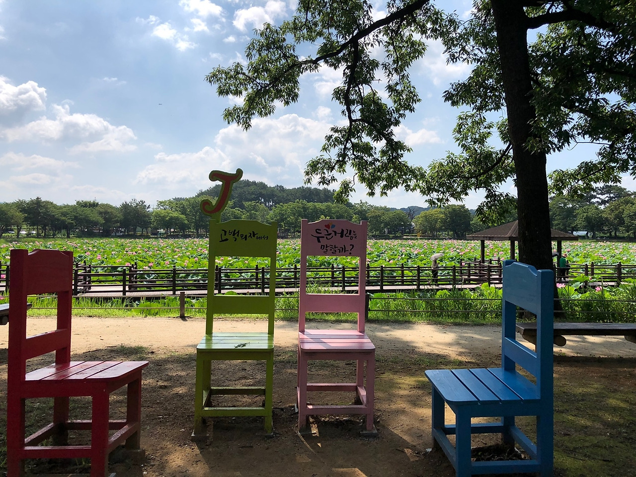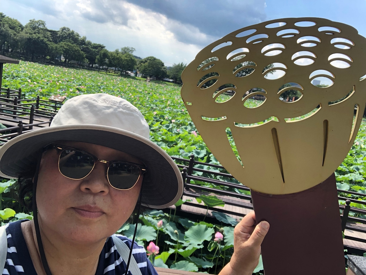 평일인데도 사람들이 연꽃 보러 많이 왔다. 몇 몇 사람들은 정자에 누워 낮잠까지 즐겼다. 군데군데 있는, 나무 아래 만들어진 탁자에서는 장기를 두는 노인들도 있다. 나도 탁자 하나 차지하고 앉아 연꽃을 바라보며 멍때리기를 했다. 햇볕이 강렬한 날이지만 나무 그늘이 풍성했고 바람이 시원해 덥지 않았다.