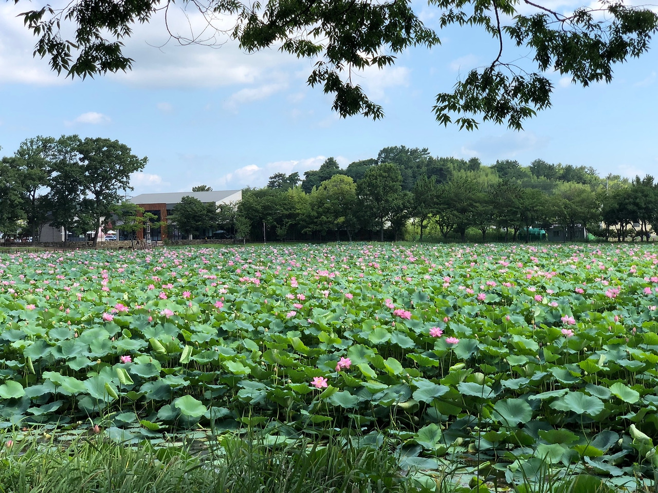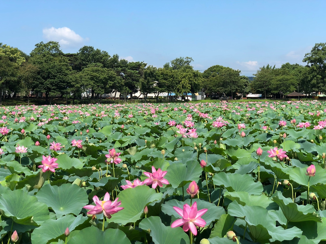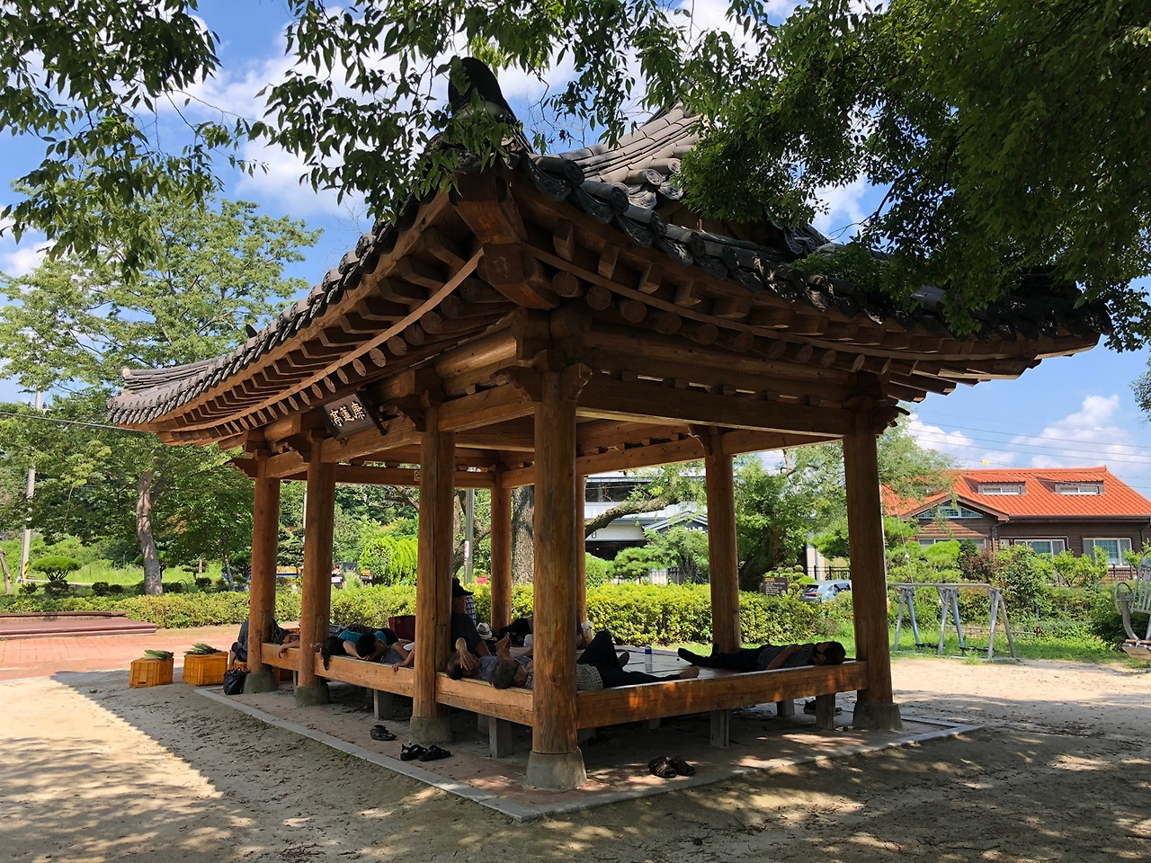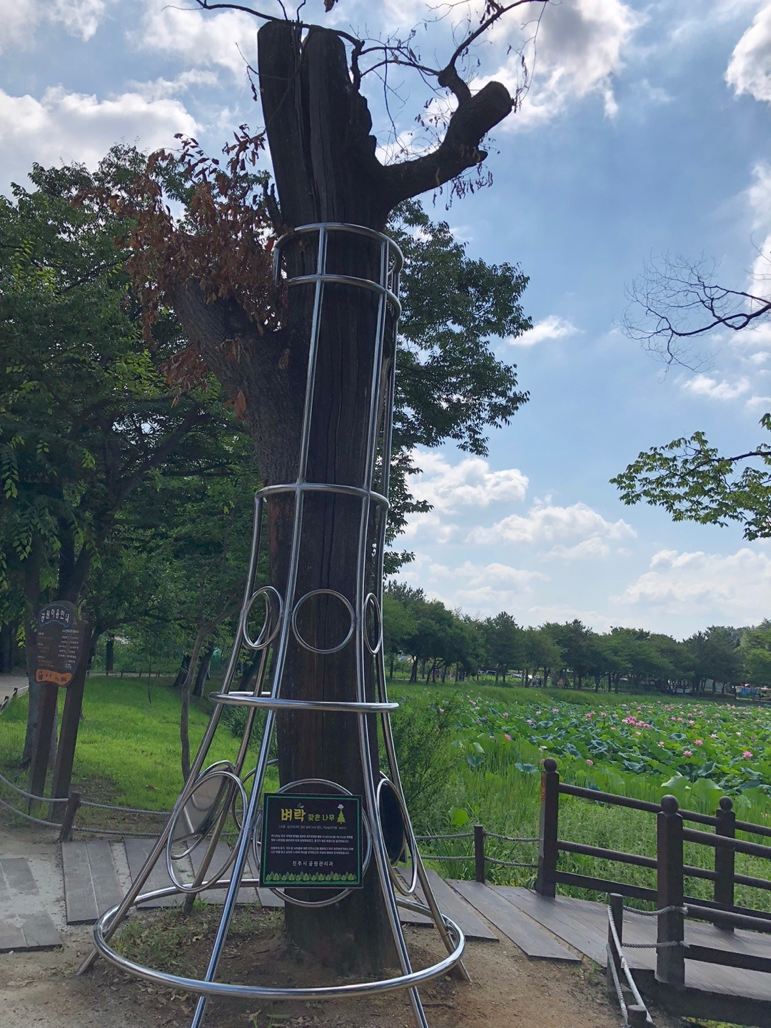 평일인데도 사람들이 연꽃 보러 많이 왔다. 몇 몇 사람들은 정자에 누워 낮잠까지 즐겼다. 군데군데 있는, 나무 아래 만들어진 탁자에서는 장기를 두는 노인들도 있다. 나도 탁자 하나 차지하고 앉아 연꽃을 바라보며 멍때리기를 했다. 햇볕이 강렬한 날이지만 나무 그늘이 풍성했고 바람이 시원해 덥지 않았다.