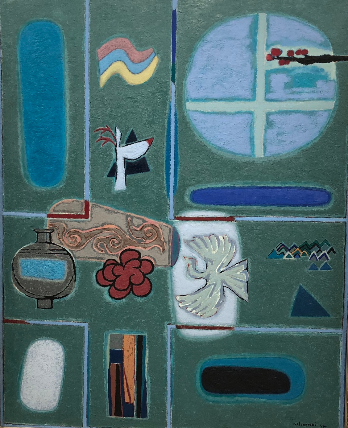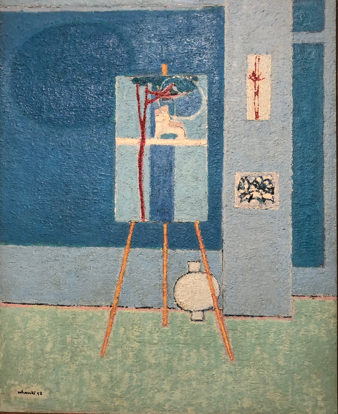 *항아리(1956년) - 도자기 자체의 다양한 둥근 기형과 선반의 수평선을 조형 요소 삼아 화면을 구성하고 있다. 이 작품은 자신의 애장 도자기를 빼곡히 보관한 성북동 집 작업실 나무 선반을 연상케 한다.