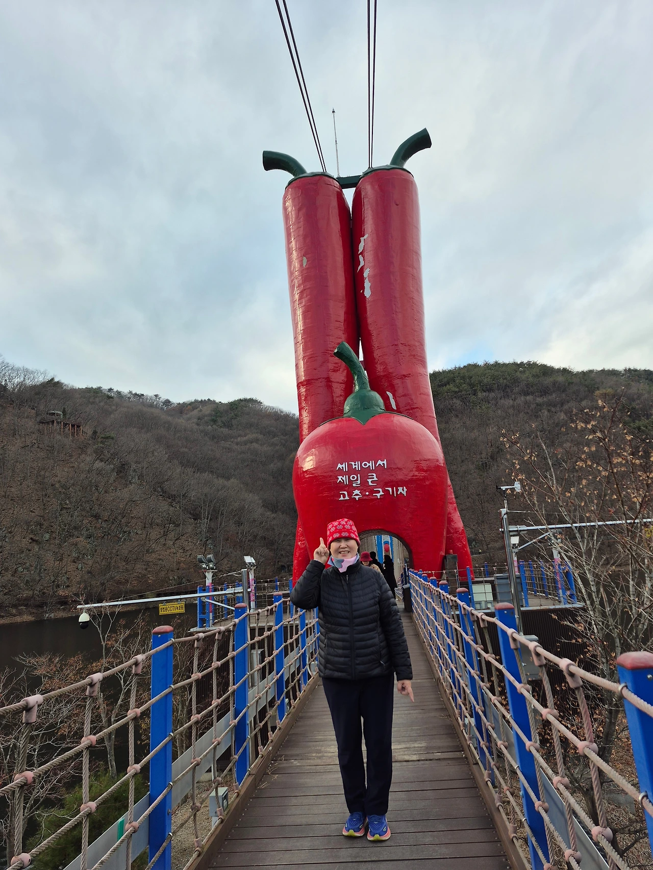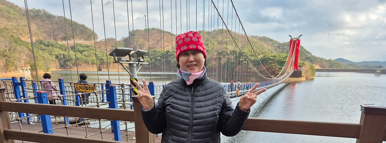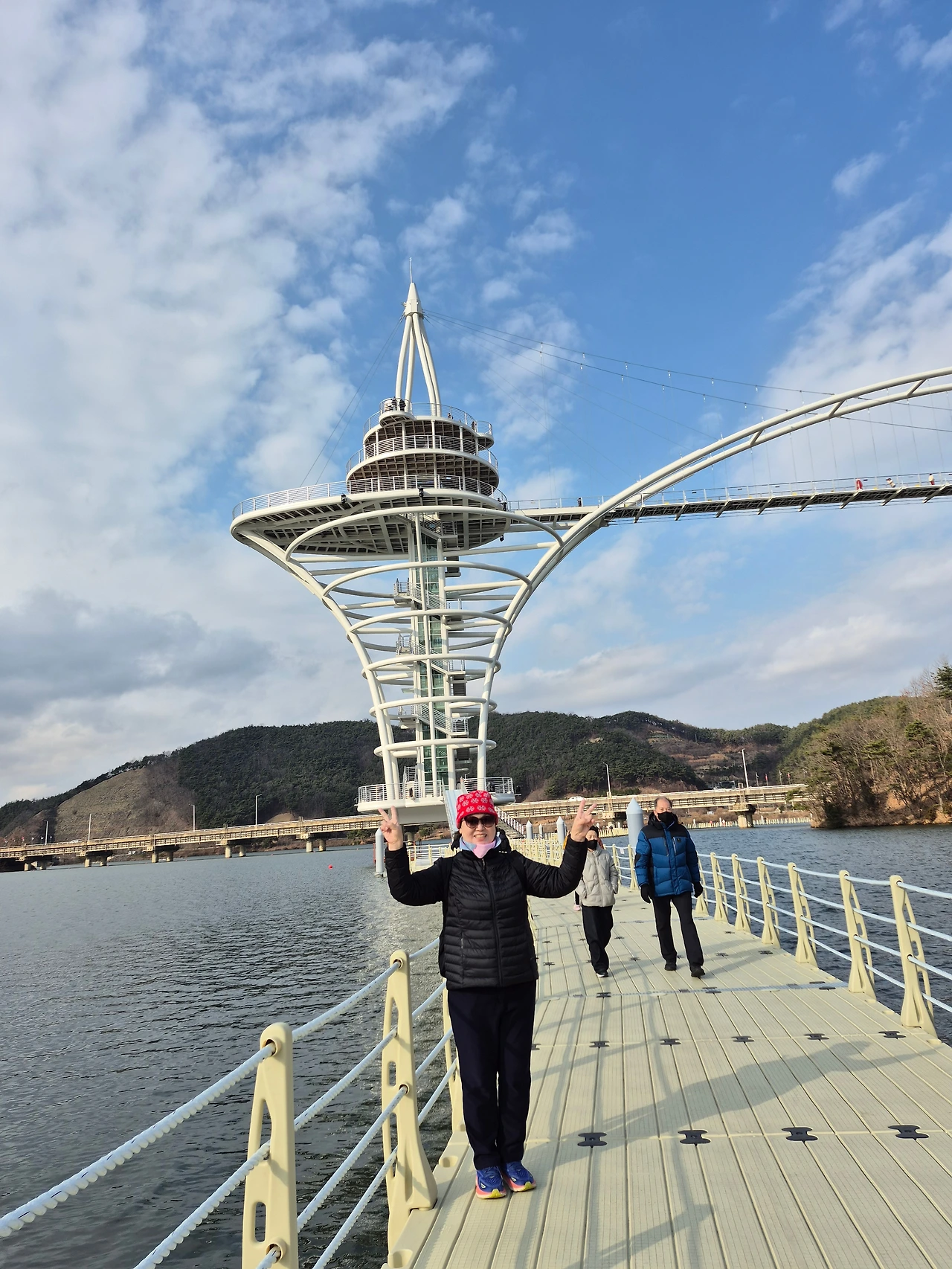 또 해설사가 들려준 대중가요 '칠갑산' 탄생 비화는 마음을 울렸다. 이 노래를 만든 조은파 님이 완행버스를 타고 칠갑산 주위를 지나가다 잠시 버스가 서게 됐고 버스에서 내려 다리를 풀며 옆 밭에서 일 하던 여자와 이야기를 하게 됐다고 한다. 그 때 그 여자는 중년의 과부였는데 이웃동네에 사는 홀아비에게서 결혼하자는 중매가 들어왔다. 그런데 알고보니 이 과부의 장녀를 신부로 맞이하고 싶다는 청이었다. 너무나도 가난했던 과부는 눈물을 머금고 딸을 그 홀아비에게 시집 보내게 됐다. 그래서 노래 가사 앞부분은 과부이야기, 뒷부분은 딸 이야기라고 한다. 참 가난하고 한 많았던 우리 선조들의 애절한 삶이 노래에 들어있어 노래가 그렇게 슬프구나. 한나절만에 칠갑산. 장곡사.보물.천장호 출렁다리. 청양타워 등을 보았다. 처음 가본 청양이다. 25.12.6.