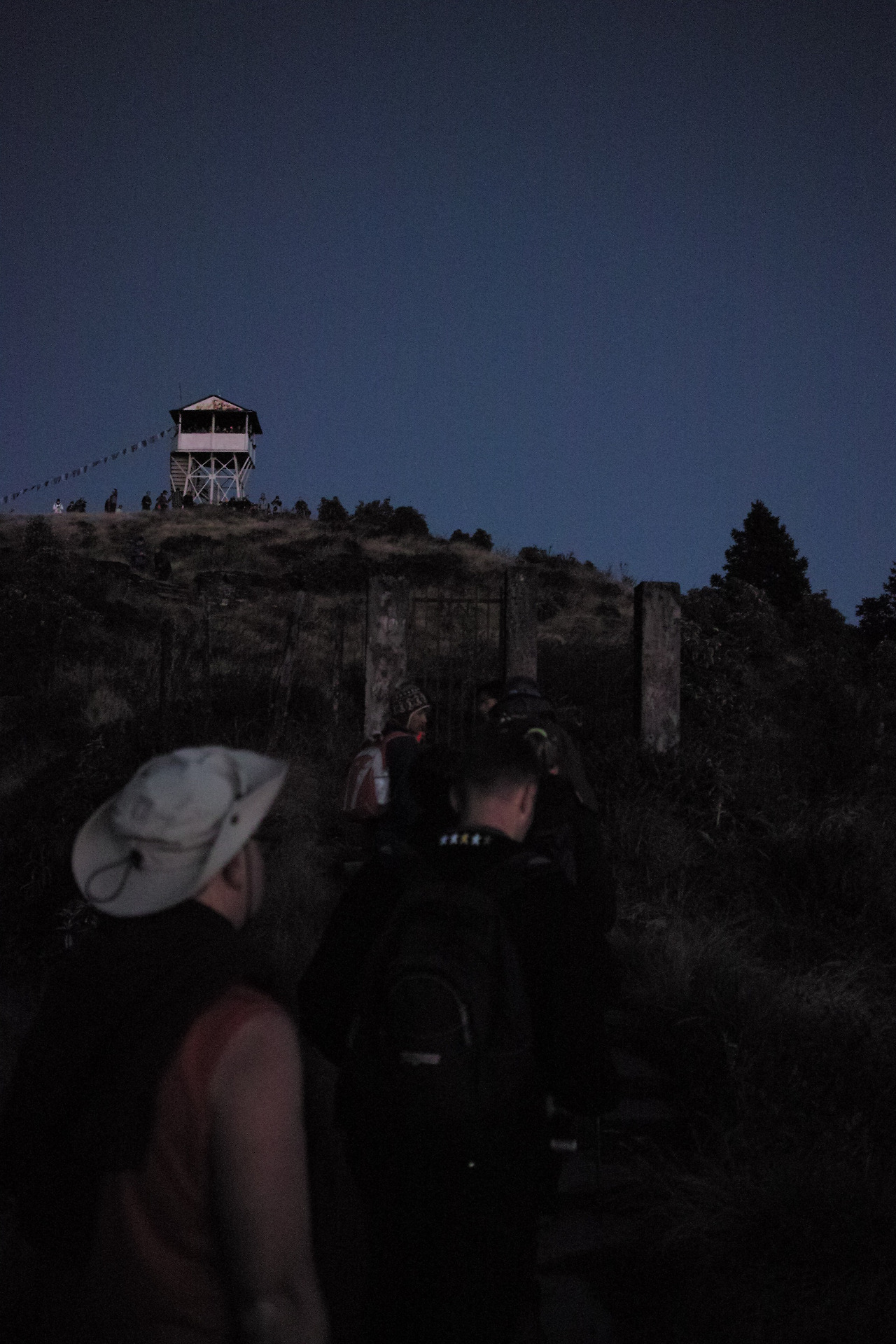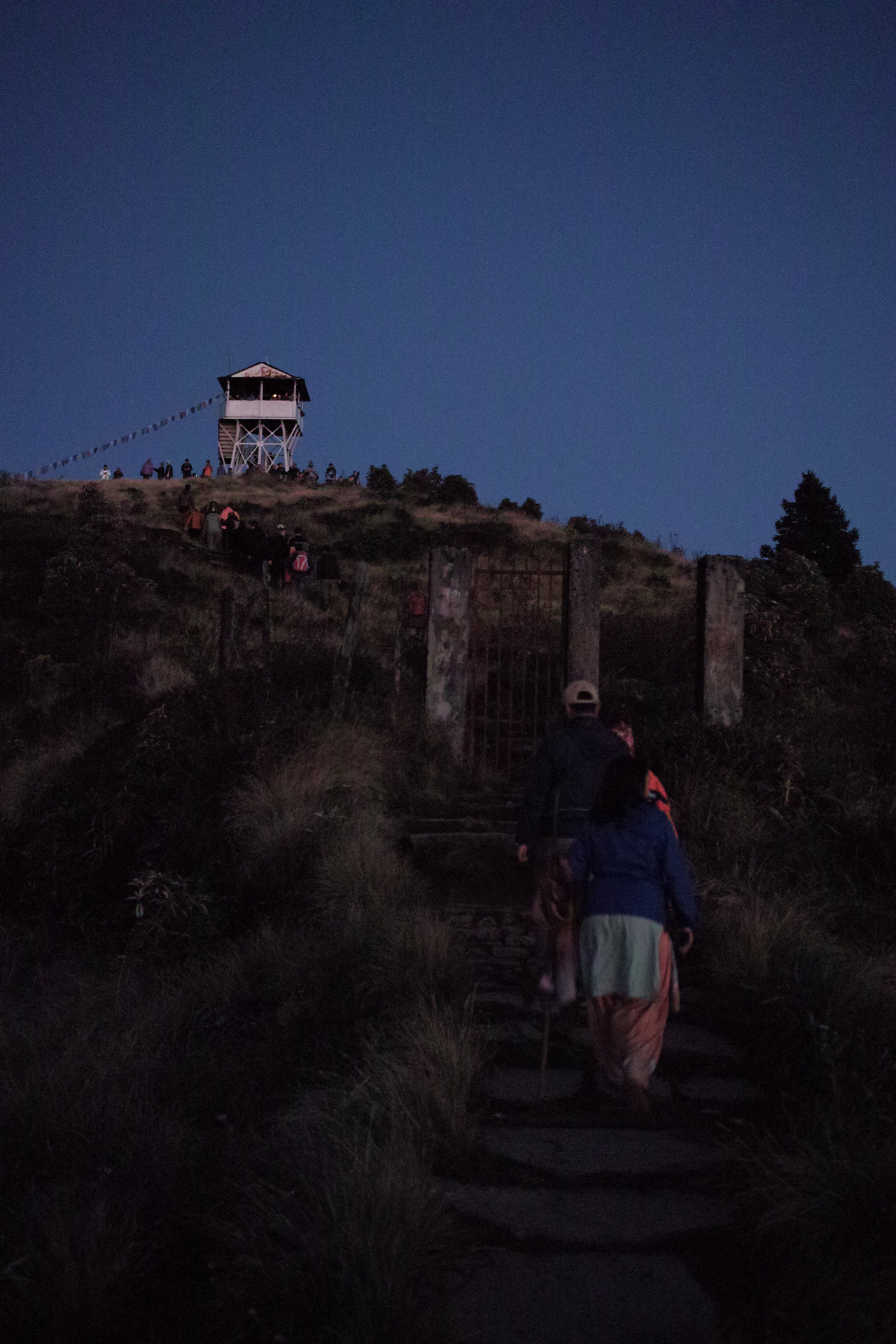 세상은 아직 완전한 어둠이다. 푼힐 전망대에서 일출을 보기 위해서는 지금 일어나 나가야 한다. 옷을 따뜻하게 챙겨 입고 헤드랜턴 불빛에 의지해 숙소 뒤로 나 있는 전망대 가는 길로 들어선다. 어디서 나왔는지 이미 많은 사람들이 줄을 이루어 빛나는 한 마리 뱀처럼 산을 오른다. 우리도 그 무리의 꼬리 어디쯤에 동행한다. 1시간 좀 넘게 오르자 하늘은 푸르스름하게 동이 터 오고 멀리 전망대가 보인다.