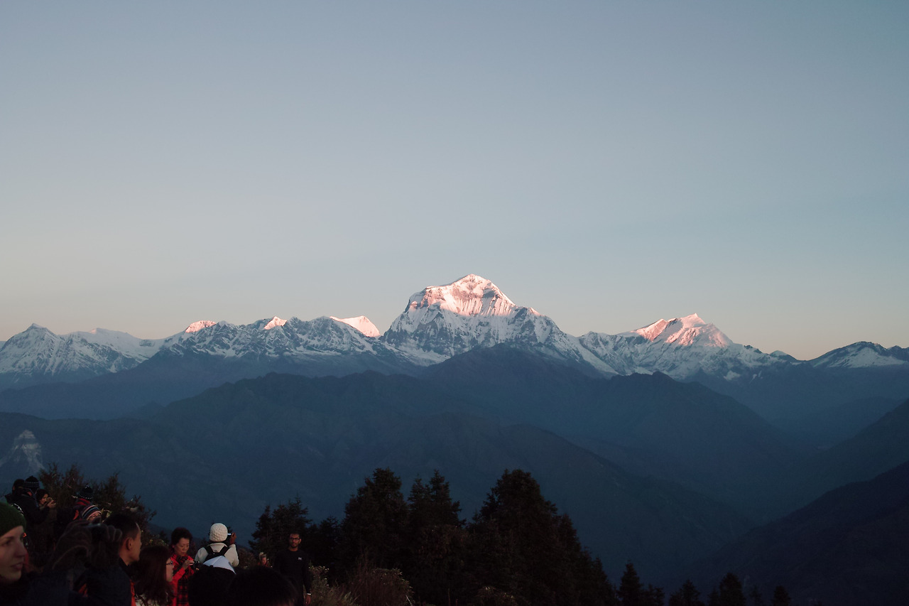 저 멀리 태양에서 달려온 햇살은 지구에서 가장 높은 곳부터 닿기 시작한다. 다울라기리 정상 언저리부터 처음엔 핑크빛, 그다음엔 붉은빛, 마지막으로 황금빛을 내며 아침을 연다. 이 광경에서 영광스러움이 느껴진다. 이 곳에서는 저 영광이 매일 아침마다 반복된다니... 사뭇 경건해지기까지 한다.
