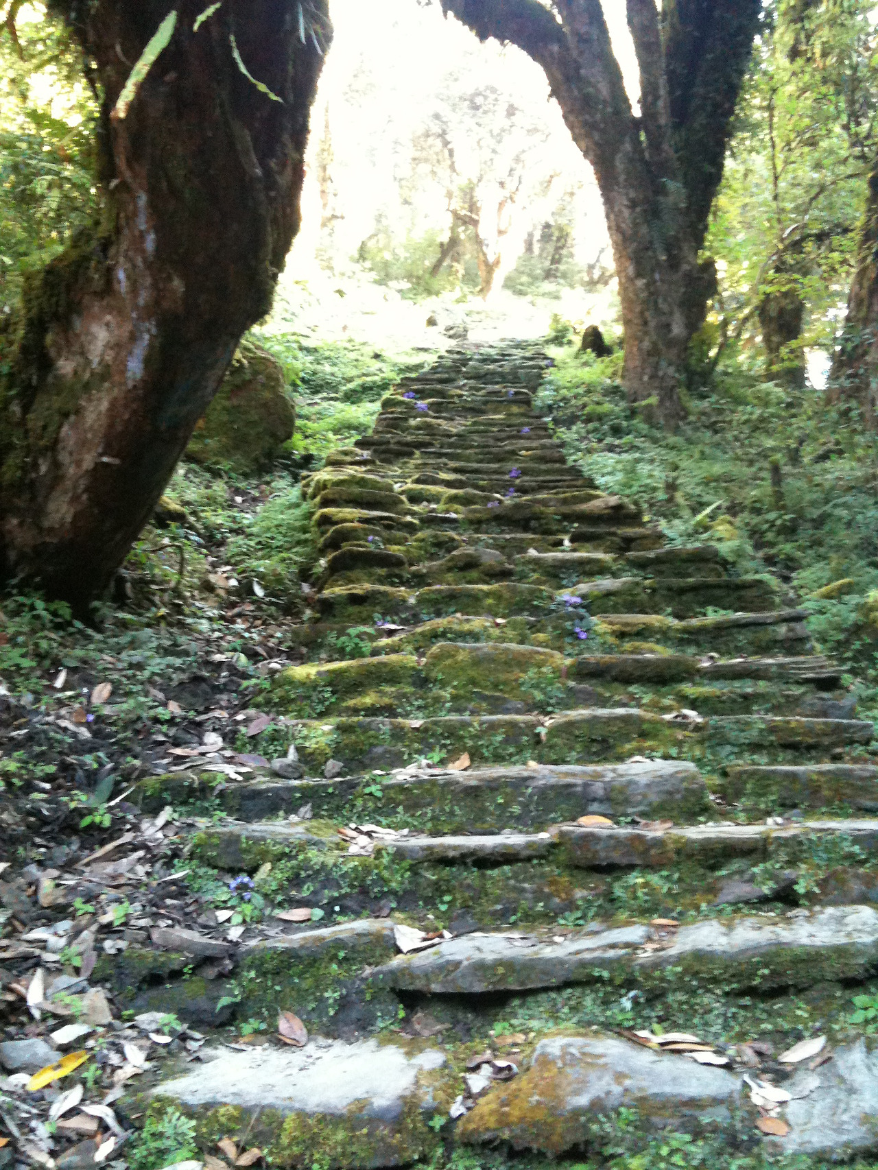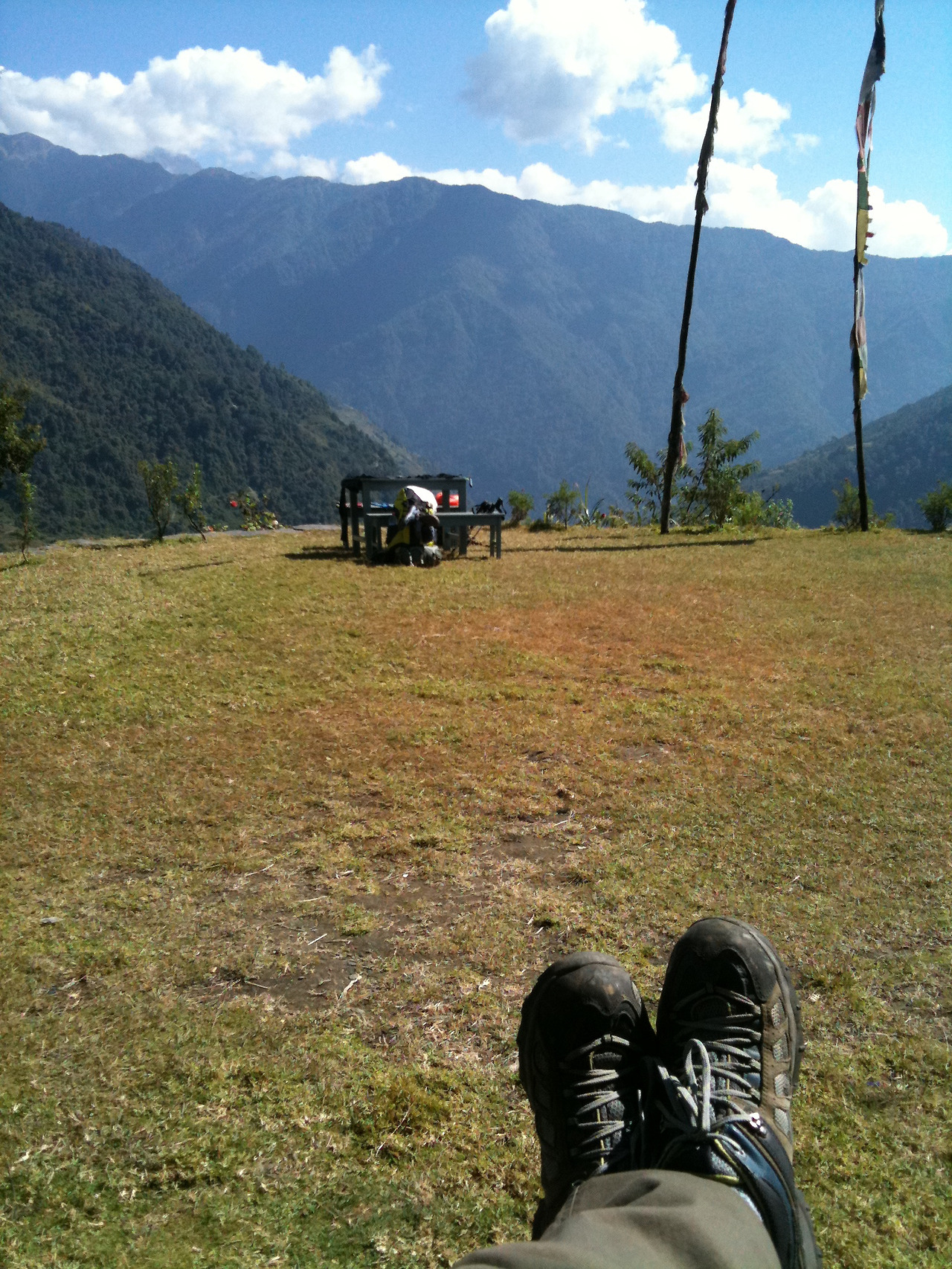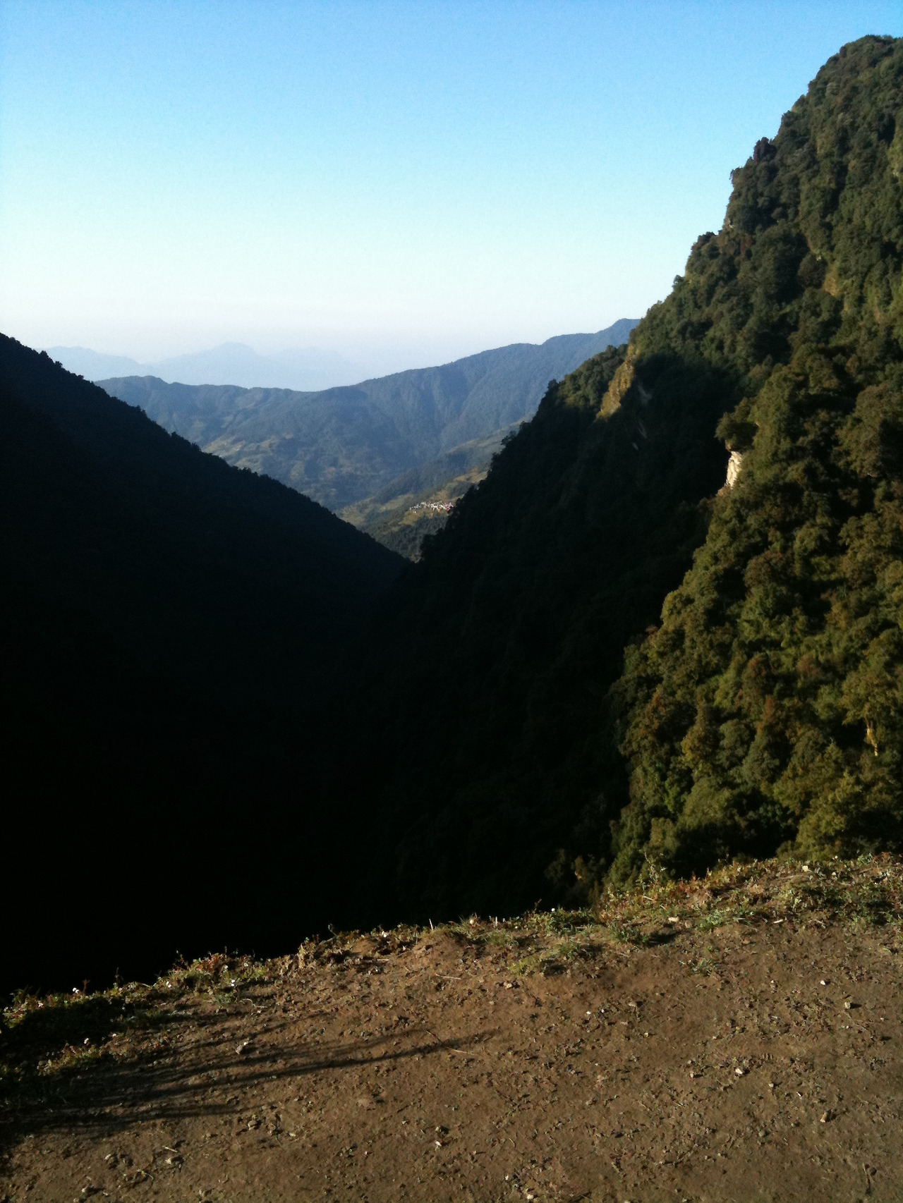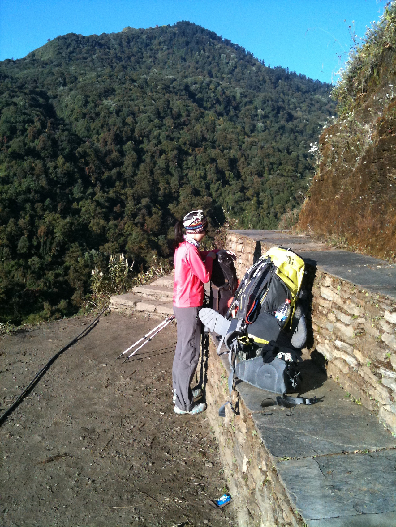 이 곳에서부터 촘롱까지는 해질녘 전에 닿겠지 생각한다. 다시 출발. 계곡을 건너기 위해 가파른 내리막길을 실컷 내려가서는 다시 산등성이 길까지 오르막을 올라야 한다. 짐이 많다. 정말 길 위의 인생을 사는 사람처럼 모두 지고 다니는 것 같다.(훗날 이 때의 경험이 BPL-Backpacking Light, ULH - Ultra Light Hiking 에 대한 관심을 가지게 만들었다)