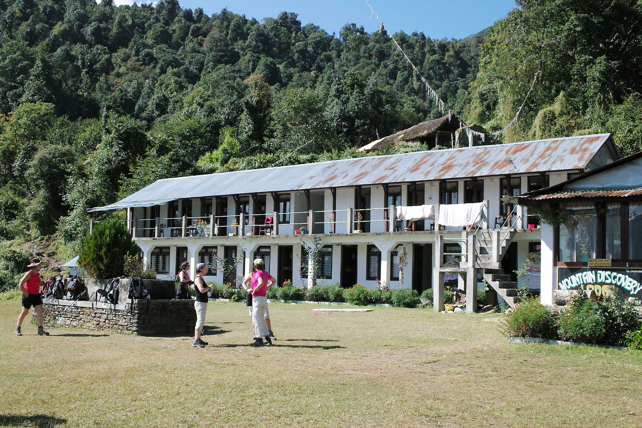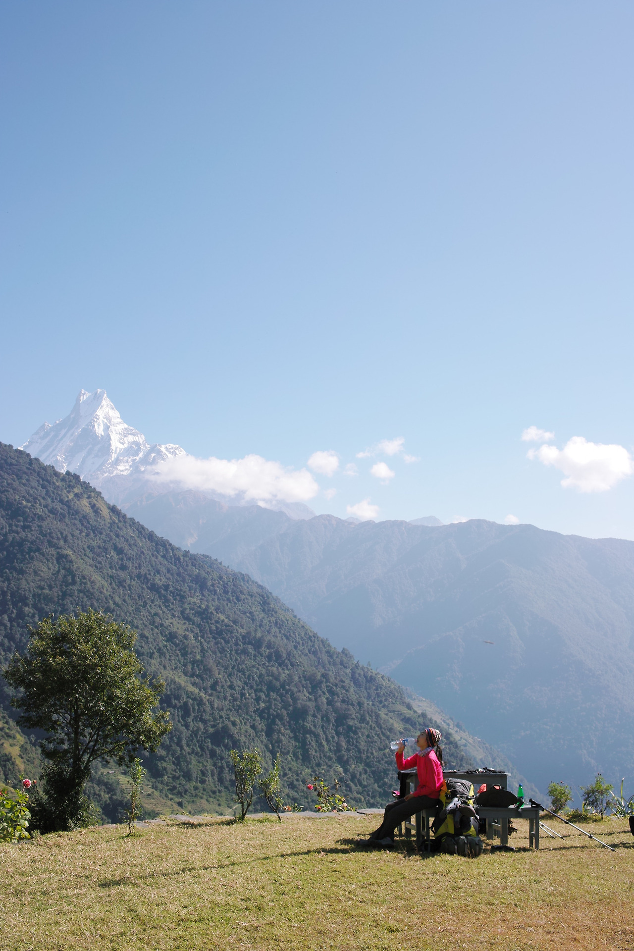 타다빠니(물이 멀다 라는 뜻)를 지나 촘롱 방향으로 내려가는 산 중턱에 멋진 롯지 하나를 만난다. 마운틴 디스커버리 롯지. 숙소 앞으로 잘 가꾼 잔디 밭이 햇살을 가득 받아 평화와 한가로움의 끝을 느끼게 해준다. 마음 같아선 여기서 하룻밤 머물고 싶다. 잔디 밭에 앉으면 마차푸차레가 눈 앞에 보인다. 목도 축이자. 잠깐 쉴 요량이었는데 이 나른한 평화로움에 젖어 게으름을 한껏 피운다.
